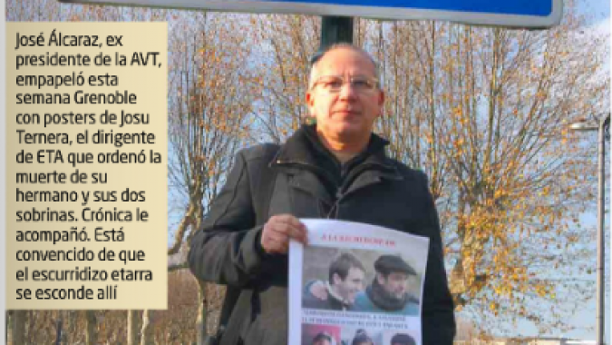 «Tengo información de que Josu Ternera se encuentra escondido en esta ciudad», dice a Crónica José Francisco Alcaraz, hermano y tío de las víctimas que aparecen en el cartel. Él es la persona que se ha dedicado a preguntar por el asesino y está dispuesto a pegar por toda la localidad francesa de Grenoble los anuncios solicitando la colaboración de la población.