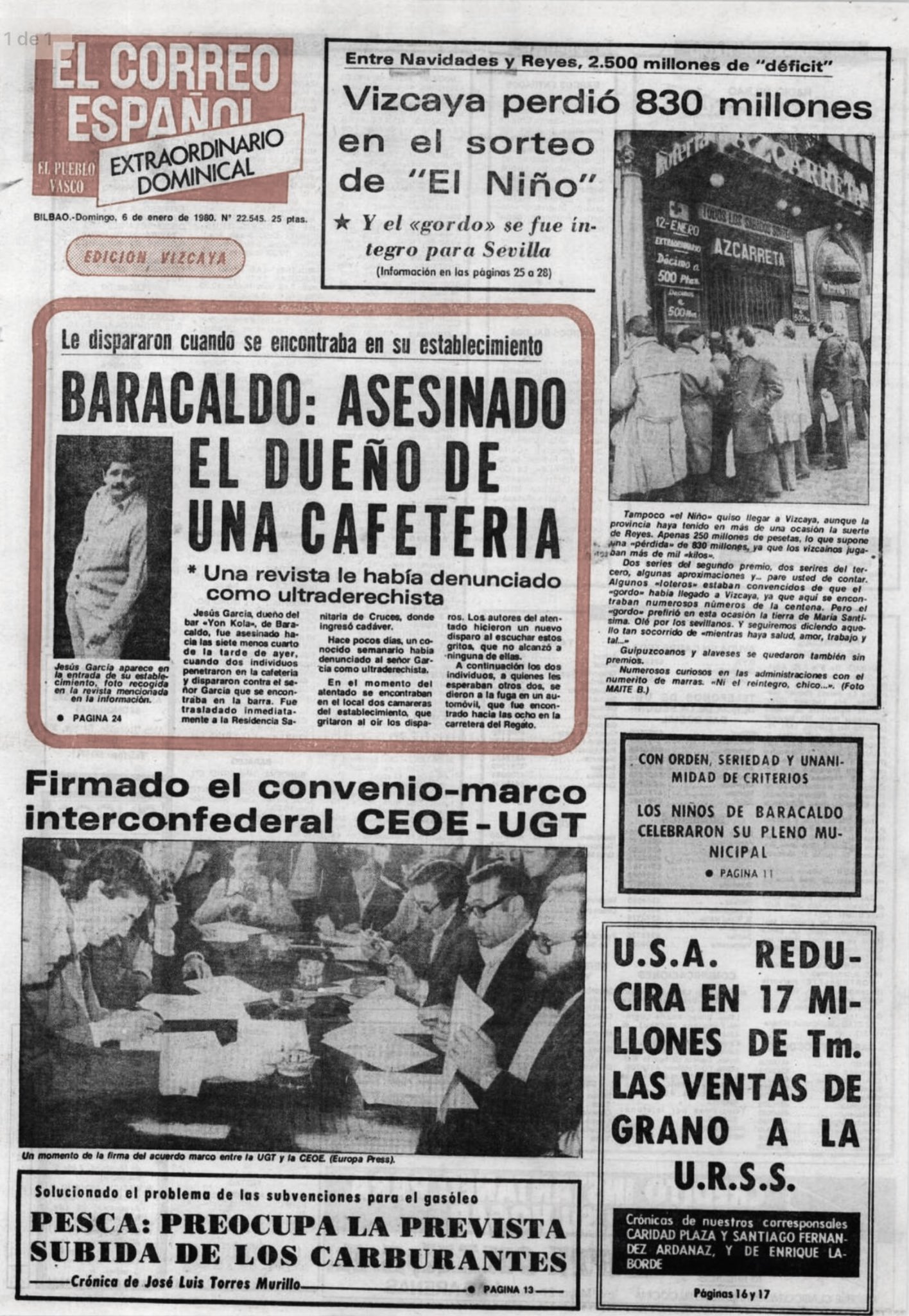 ANTONIO DÍAZ GARCÍA, asesinado de dos disparos el 5 de enero de 1981. También era hostelero, propietario del disco-bar La Gramola. ETA lo relacionó con el tráfico de drogas para justificar el asesinato.