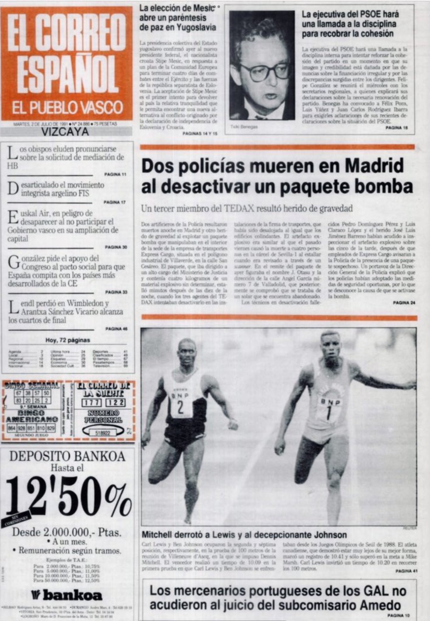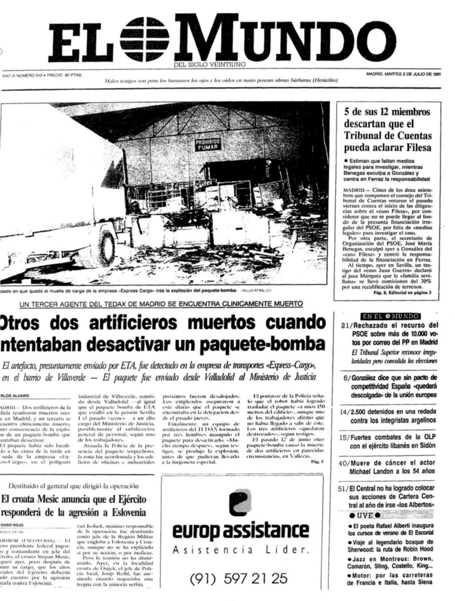 Hacia las diez y cuarto de la noche del 1 de julio de 1991 un paquete-bomba hacía explosión en la empresa Express Cargo, en el polígono industrial de Villaverde (Madrid), causando la muerte en el acto a dos artificieros de la Policía Nacional, el subinspector PEDRO DOMÍNGUEZ PÉREZ y el agente LUIS CLARACO LÓPEZ.