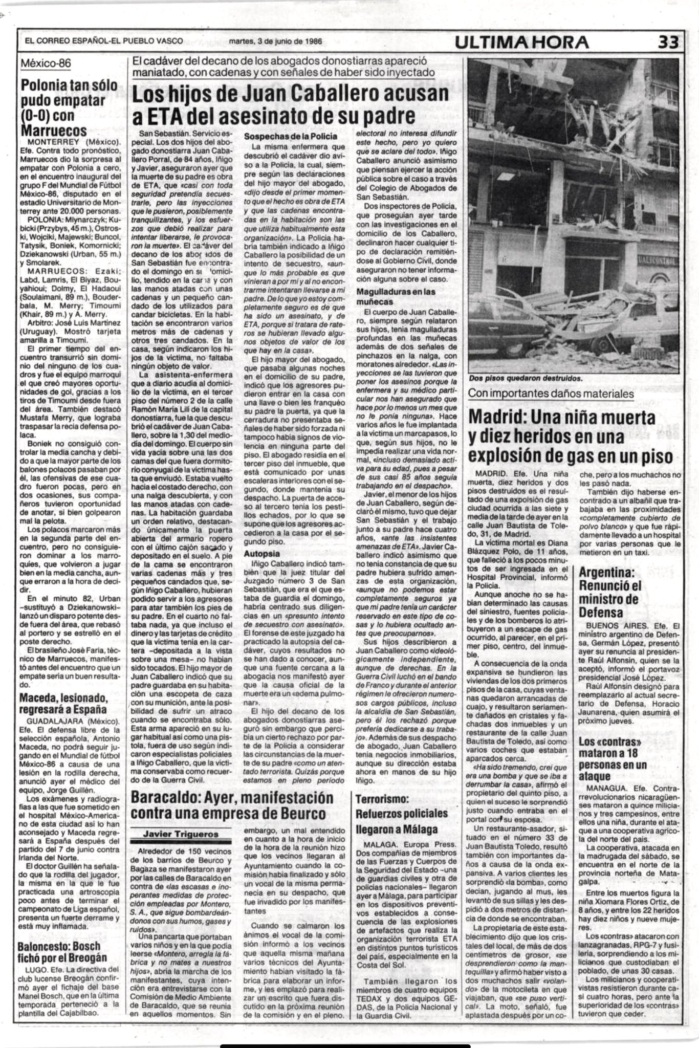 JUAN CABALLERO PORRAL asesinado el 1 de junio de 1986 en San Sebastián