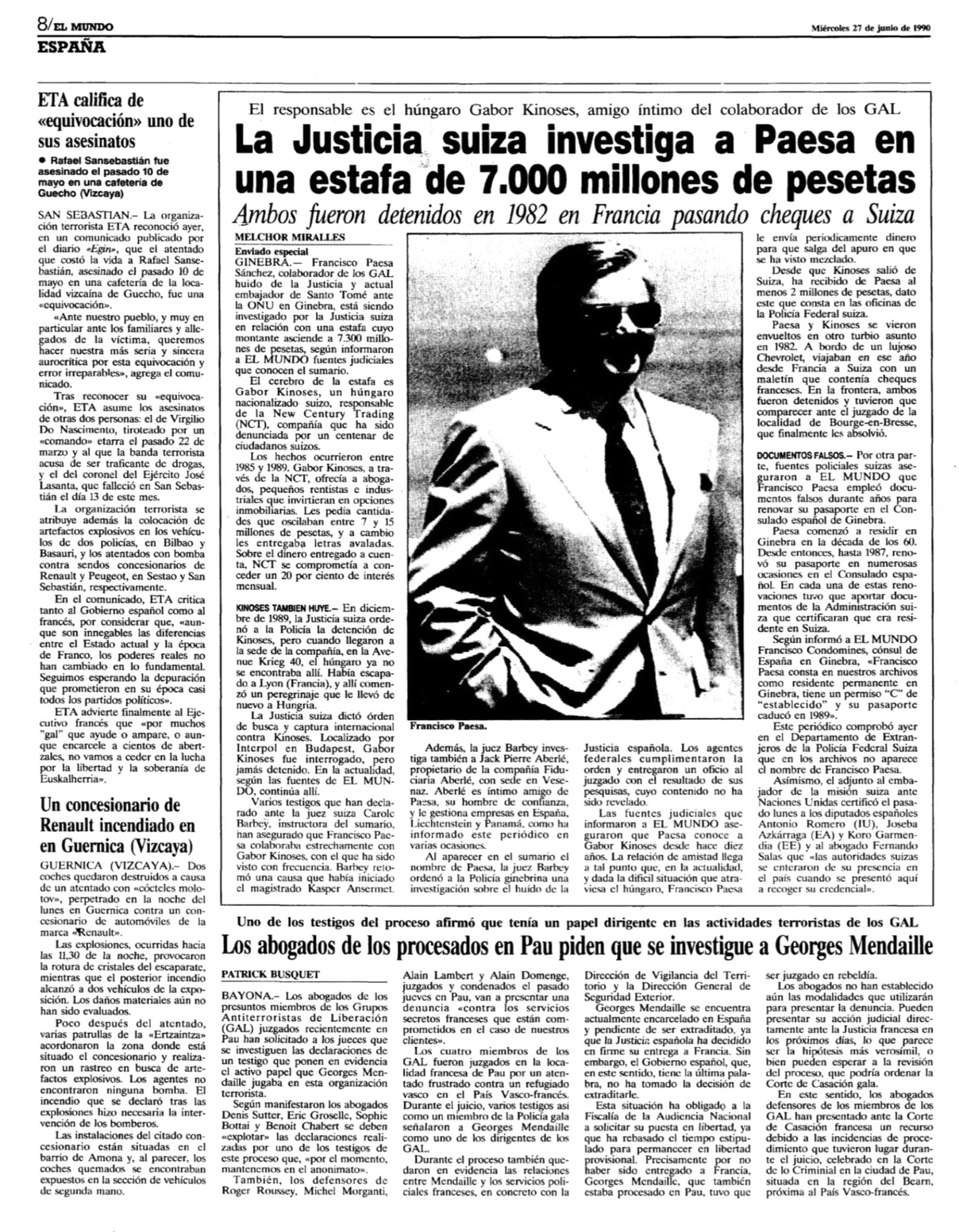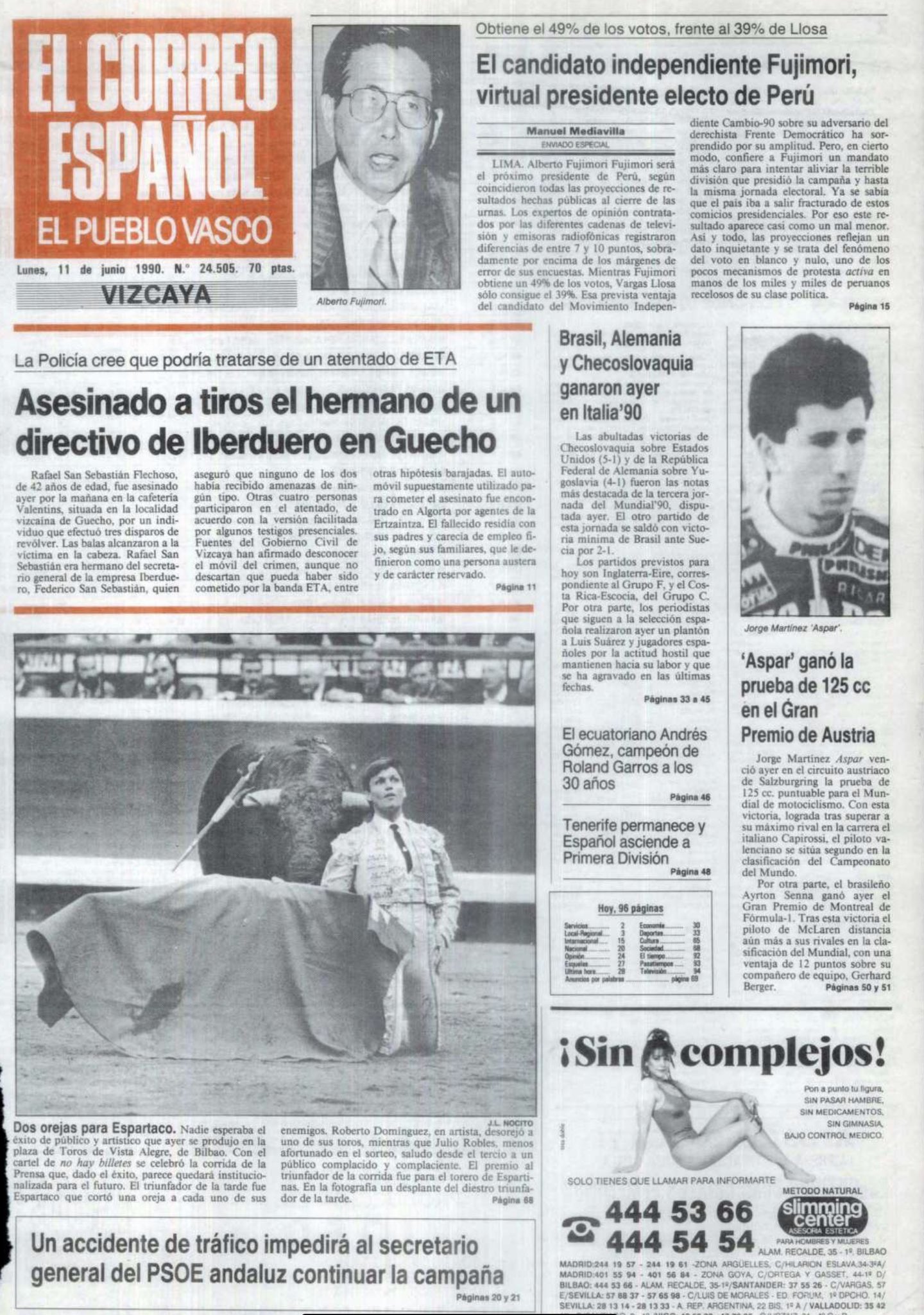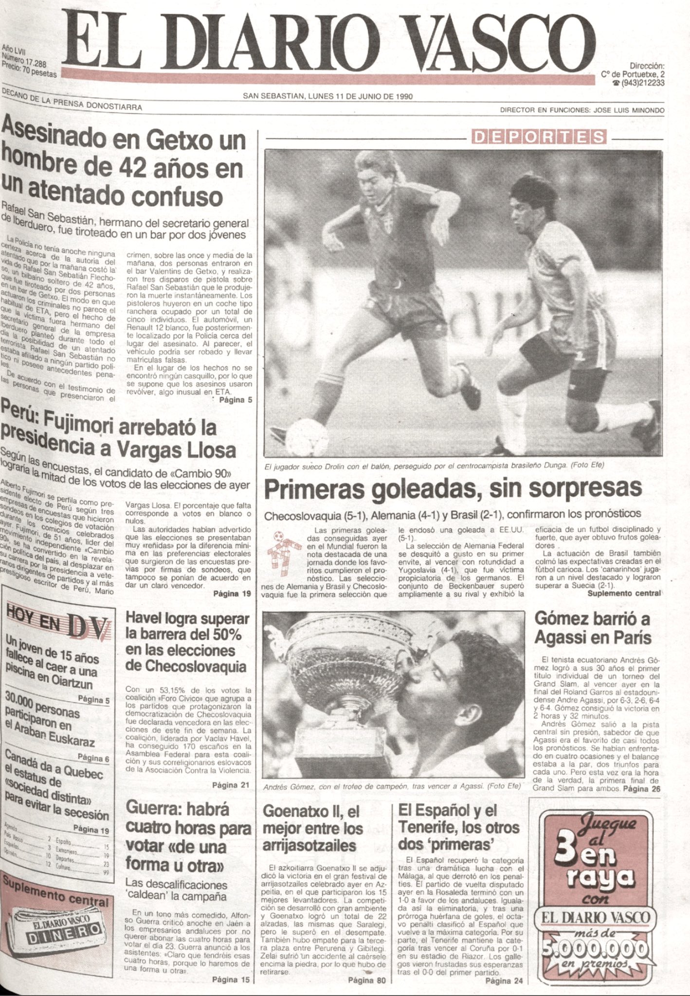 En torno a las 11:30 horas del 10 de junio de 1990, la banda terrorista ETA asesina en la cafetería Gwendolyne de Guecho (Vizcaya) a RAFAEL SAN SEBASTIÁN FLECHOSO. Dos etarras entraron en el local y efectuaron dos disparos a escasa distancia en la cabeza de la víctima, que murió prácticamente en el acto.
