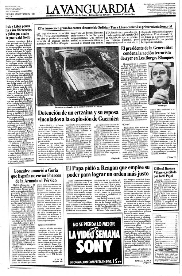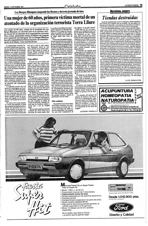 EMILIA ALDOBMÁ SANZ , asesinada el día 10 de Septiembre de 1.987 por Terra Lliure en Les Borges Blanques (Lérida)