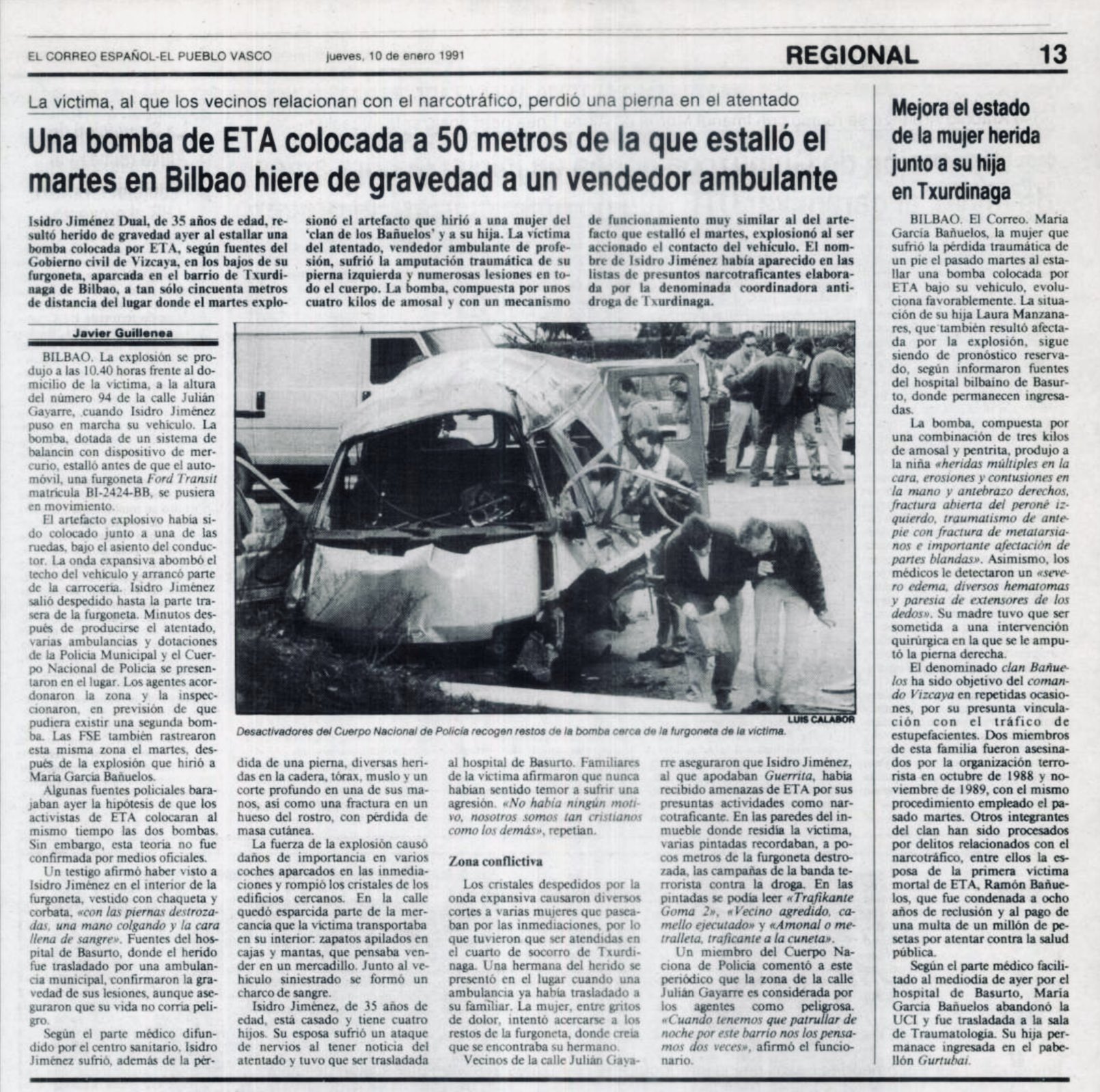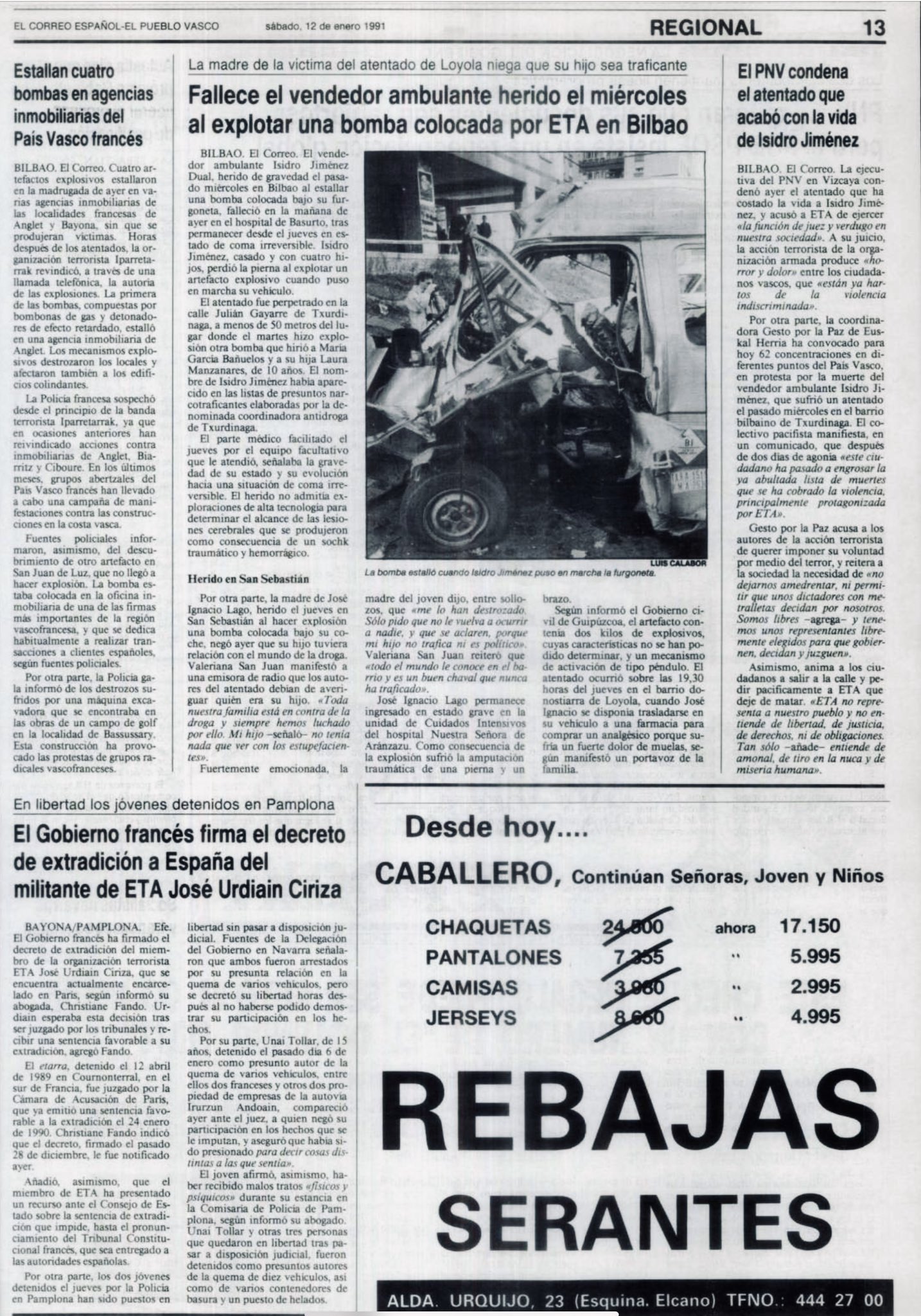 El 11 de enero de 1991 fallece el vendedor ambulante ISIDRO JIMENEZ DUAL, a consecuencia de las heridas sufridas en el atentado del que fue objeto dos días antes.