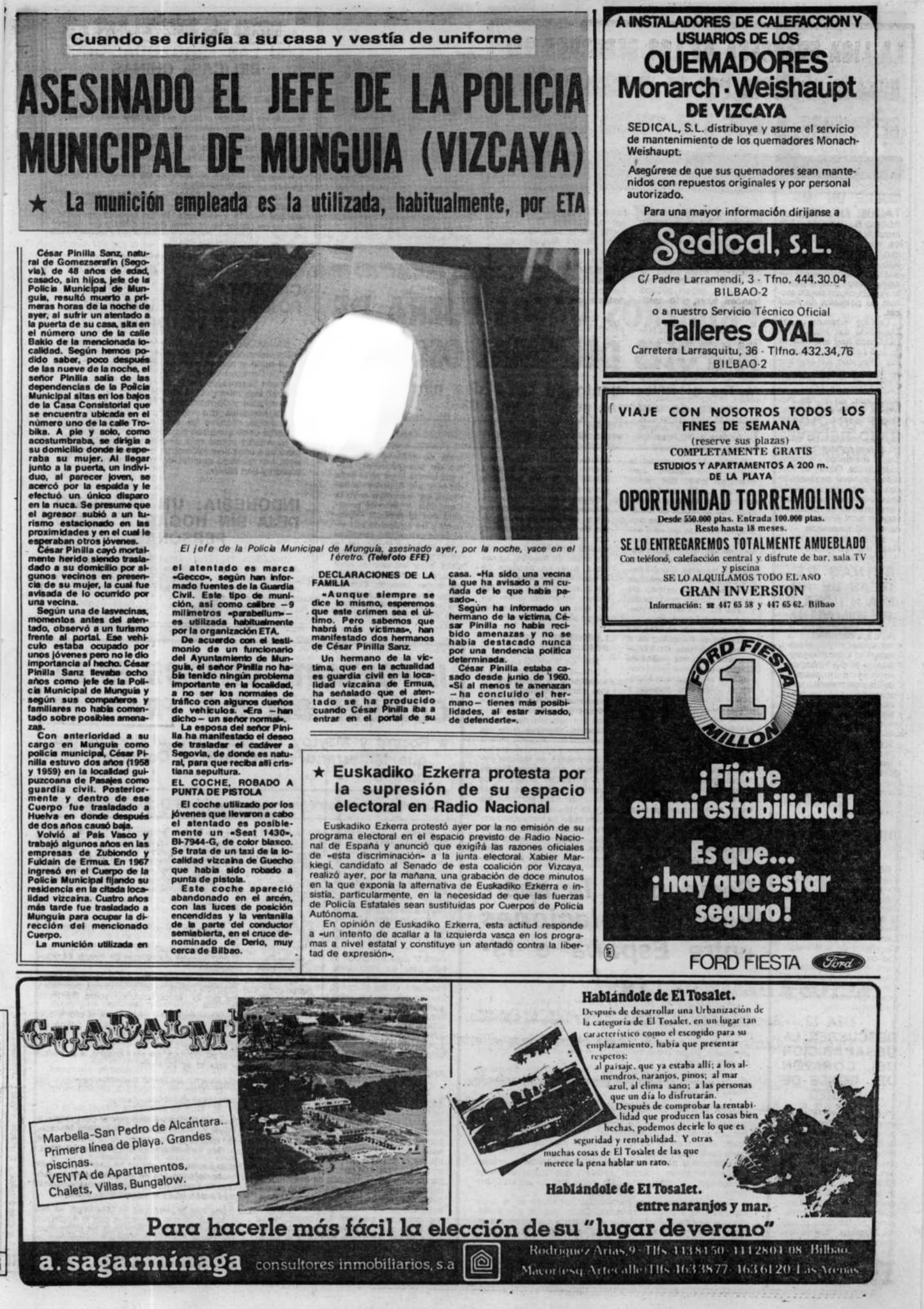 CÉSAR PINILLA SANZ asesinado 12 de febrero de 1979 en Bermeo.