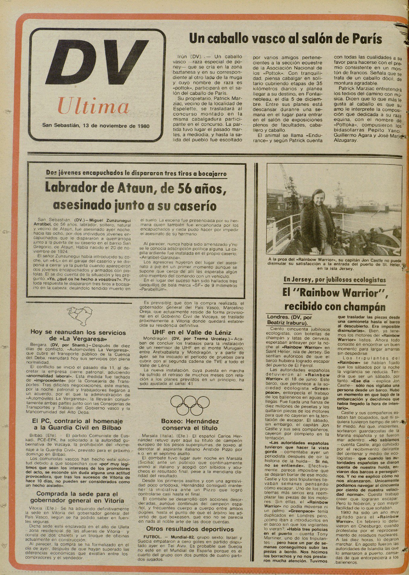 MIGUEL ZUNZUNEGUI ARRATIBEL, asesinado el 12 de noviembre de 1980 en Ataun.