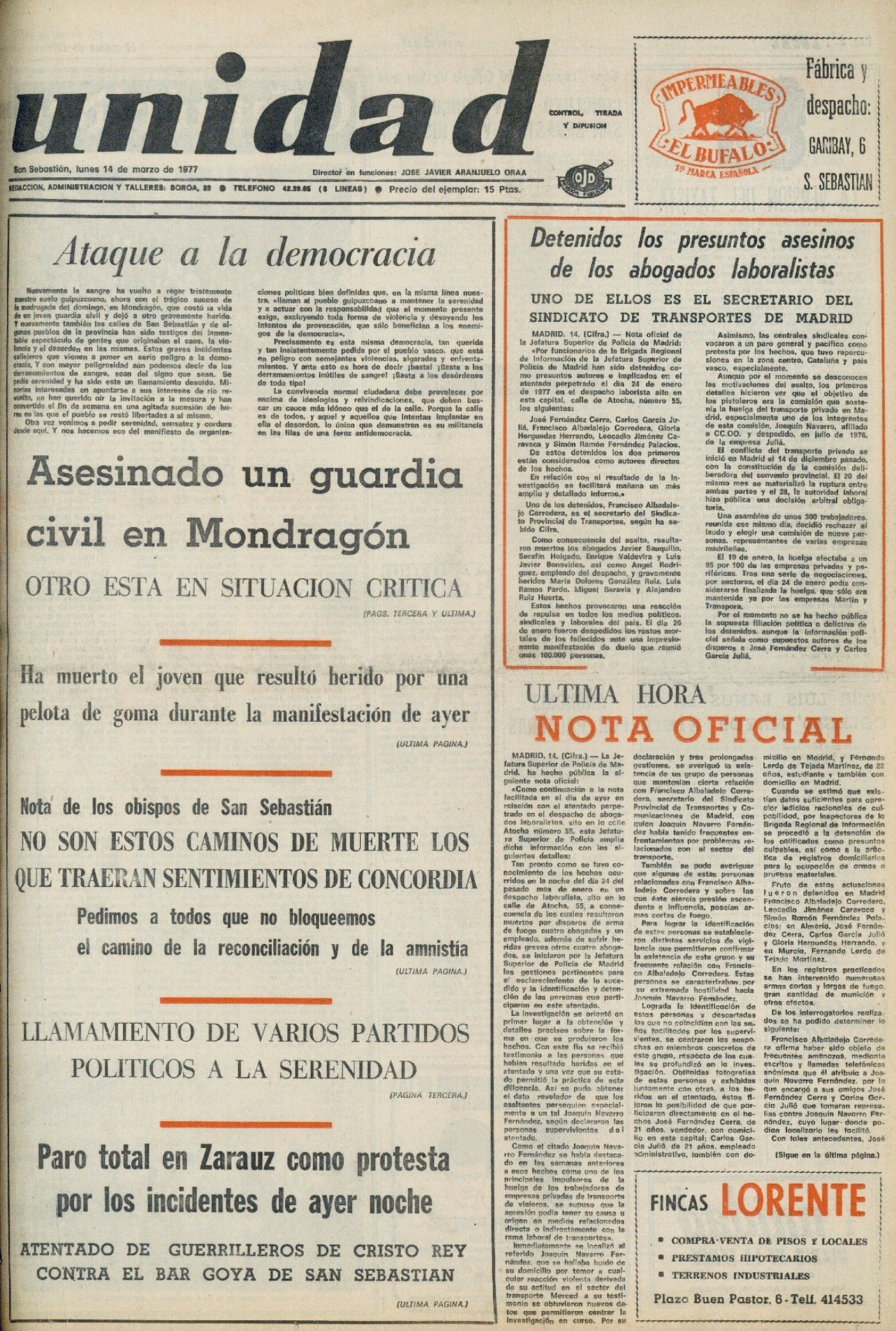 CONSTANTINO GÓMEZ BARCIA asesinado el 13 de marzo de 1977 en Mondragón