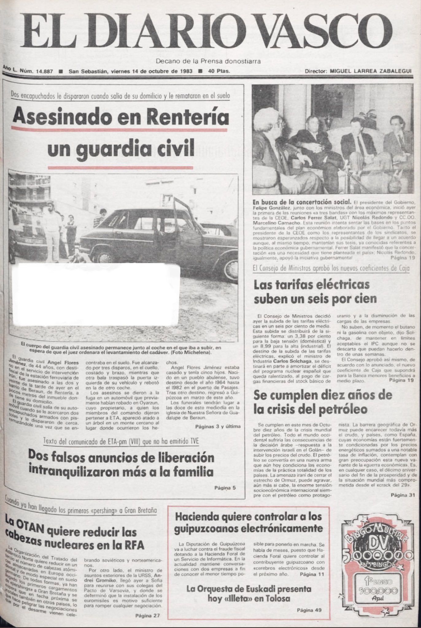 ÁNGEL FLORES JIMÉNEZ asesinado el 13 de octubre de 1983 en Rentería.