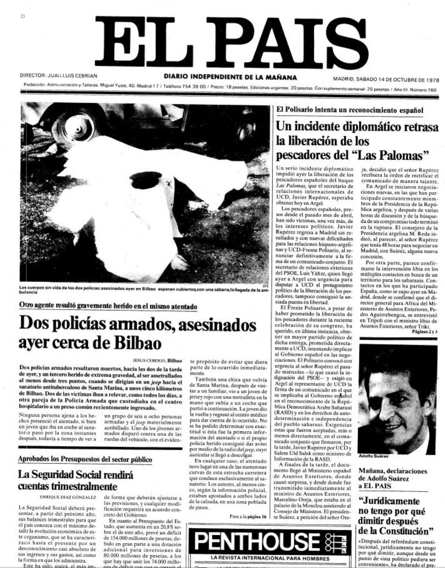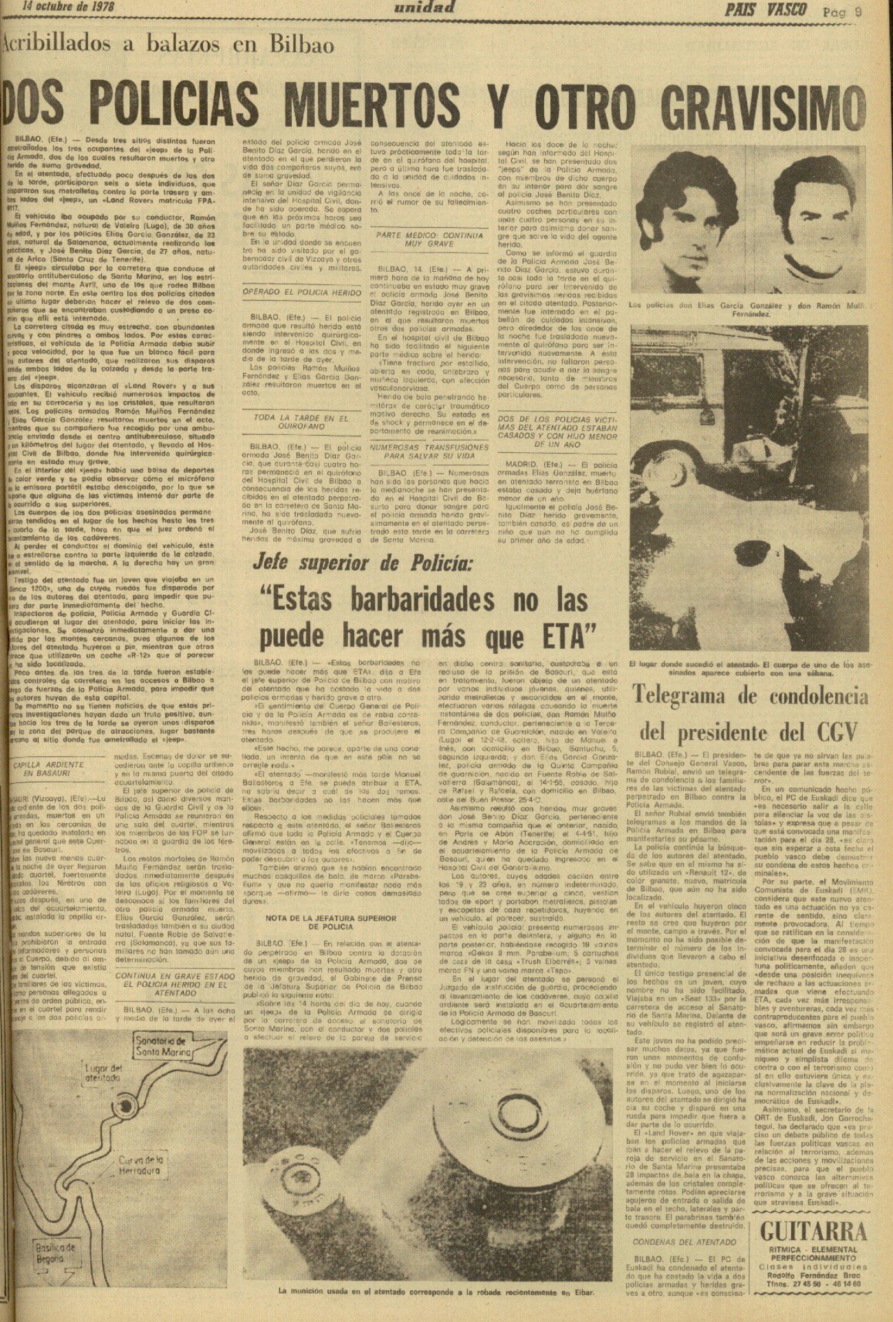 El 13 de octubre de 1978 la banda terrorista ETA asesinaba en Bilbao a los policías nacionales ELÍAS GARCÍA GONZÁLEZ y RAMÓN MUIÑO FERNÁNDEZ, y dejaba gravemente herido al agente José Benito Díaz García, que fallecería doce días después, el 25 de octubre.