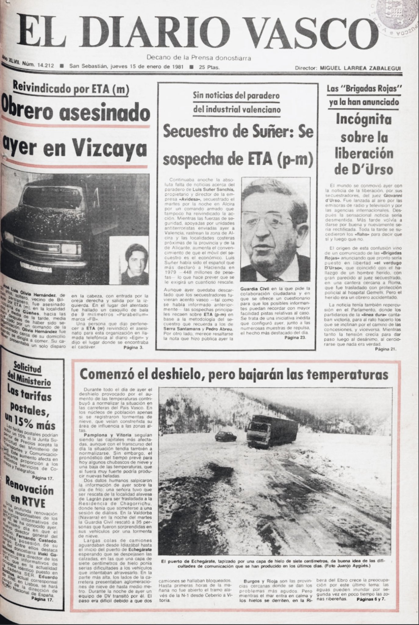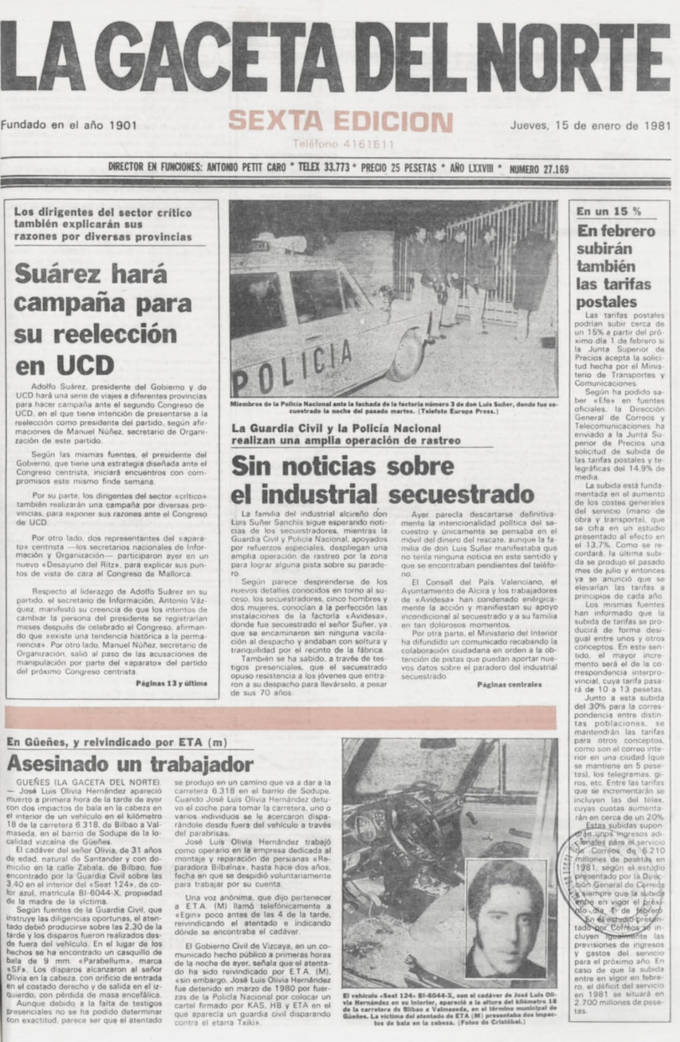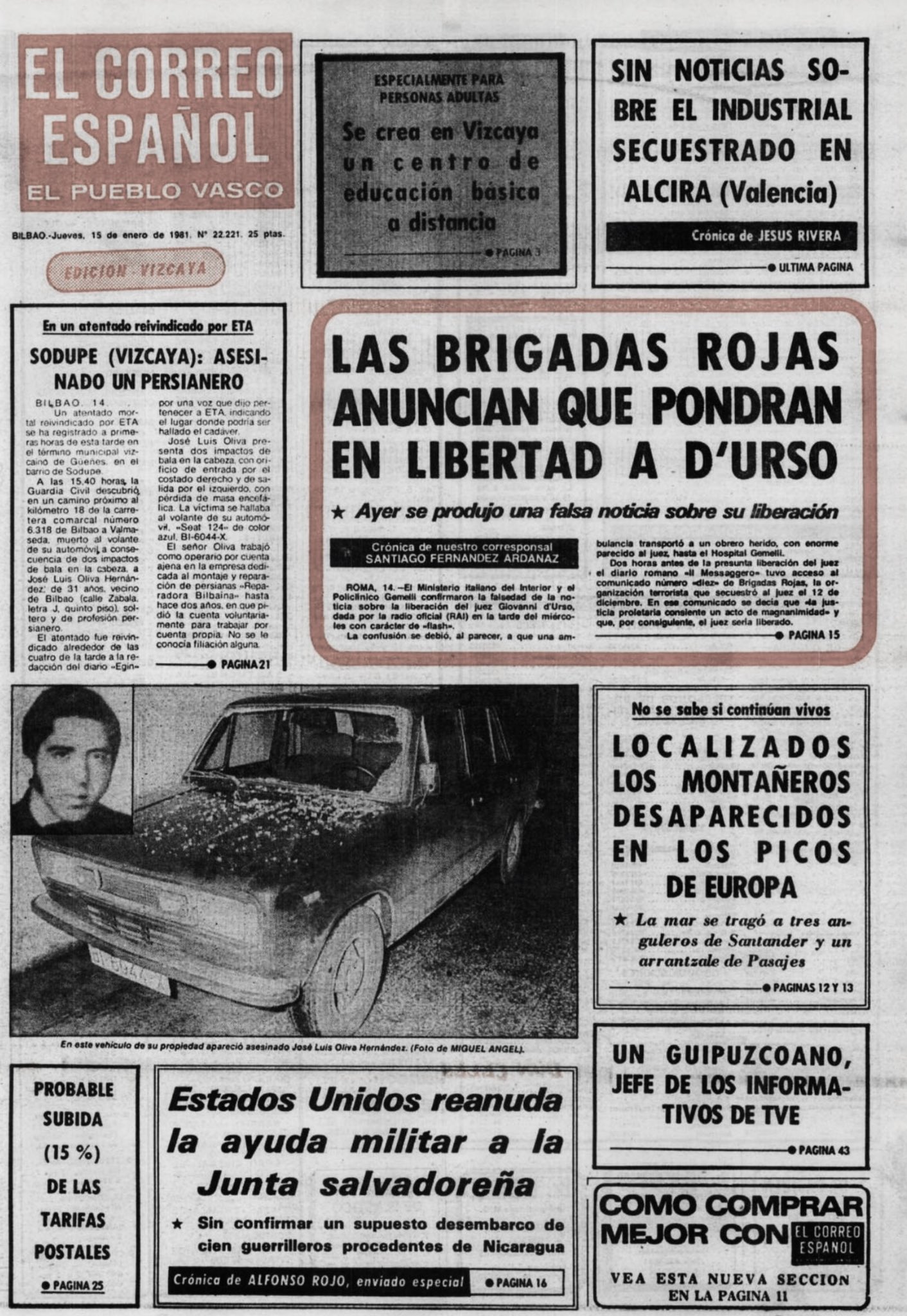 El 14 de enero de 1981 es asesinado en Sodupe (Vizcaya) JOSÉ LUIS OLIVA HERNÁNDEZ, supuestamente miembro del grupo Orbaiceta de ETA. La banda decidió acabar con su vida porque, supuestamente, se había gastado en fines personales el dinero obtenido en un atraco.