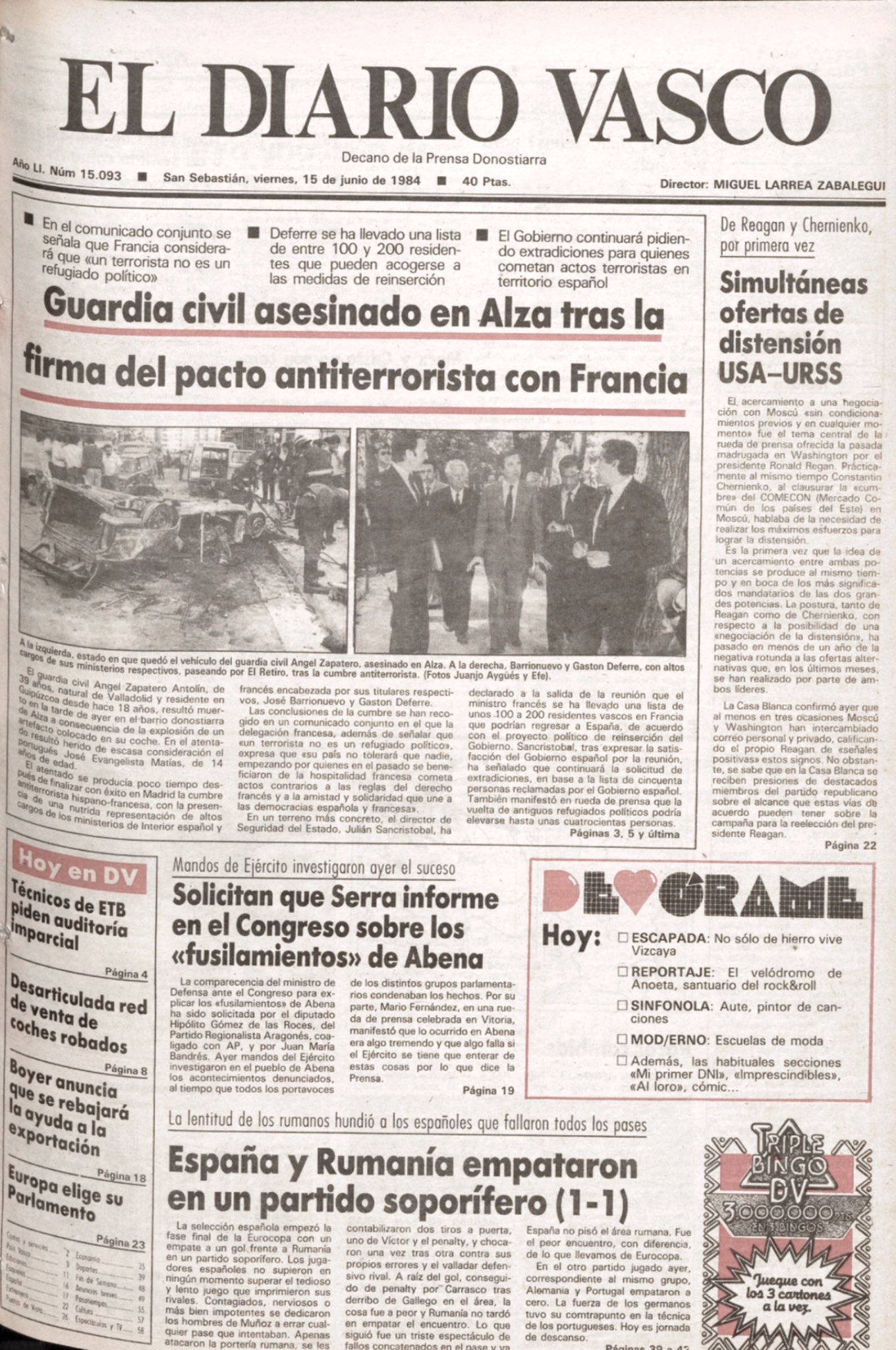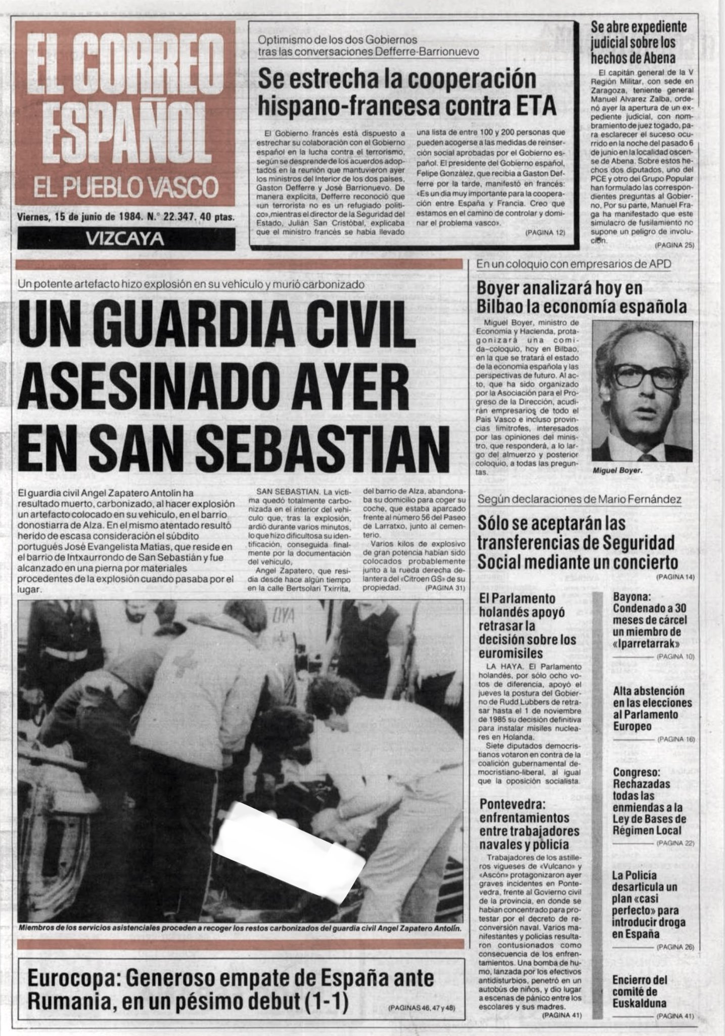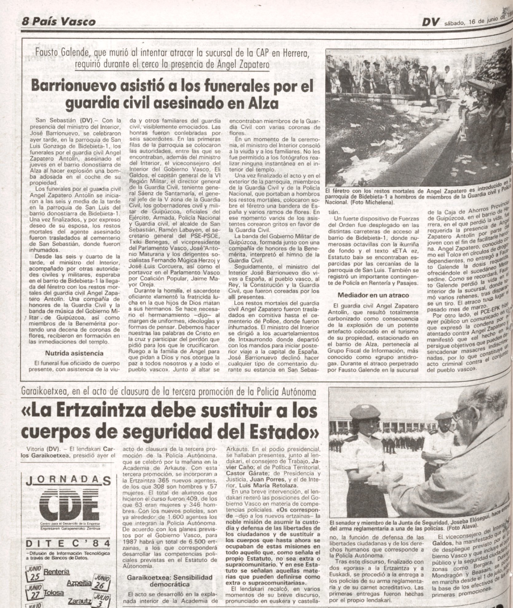 ÁNGEL ZAPATERO ANTOLÍN asesinado el 14 de junio de 1984 en san Sebastián.