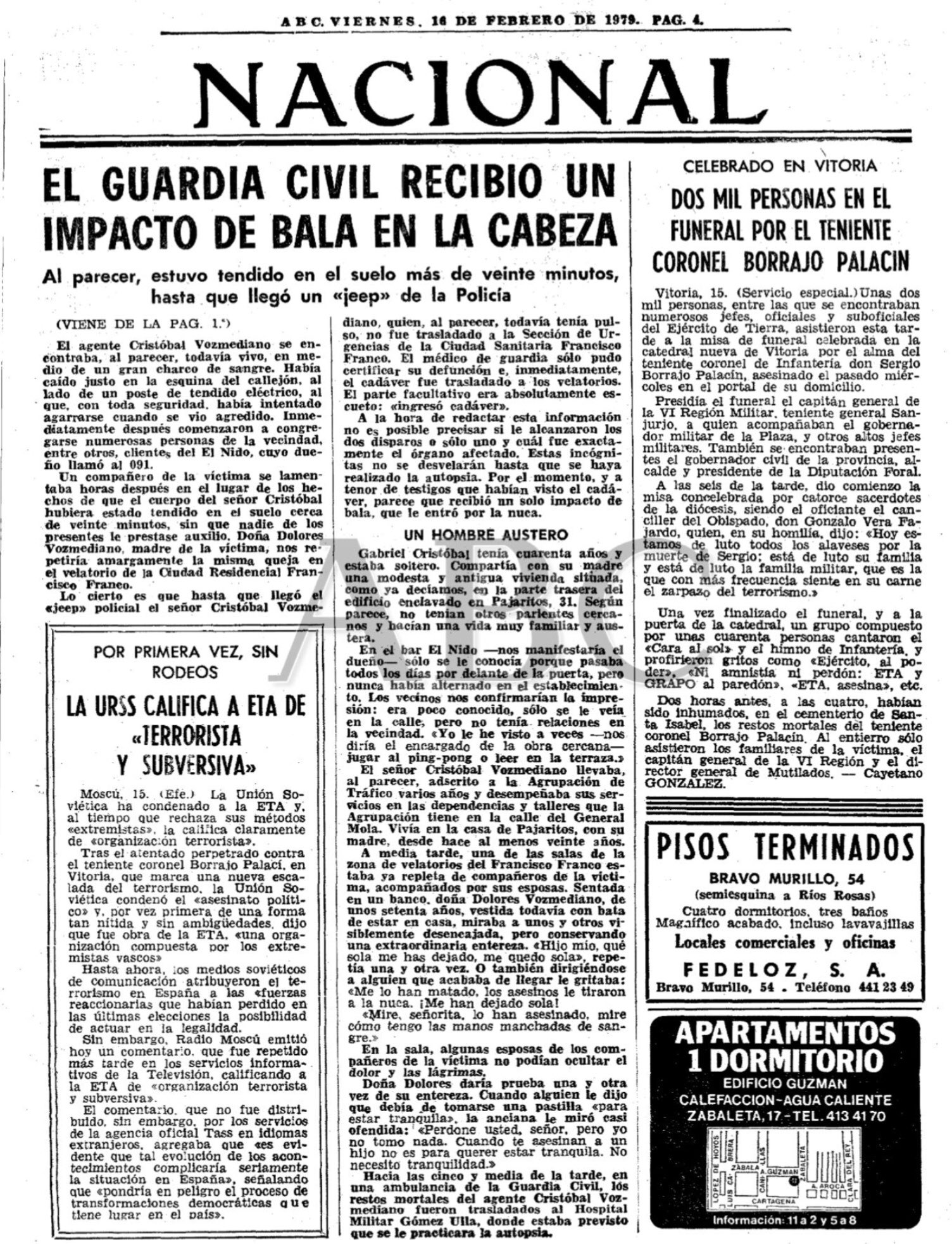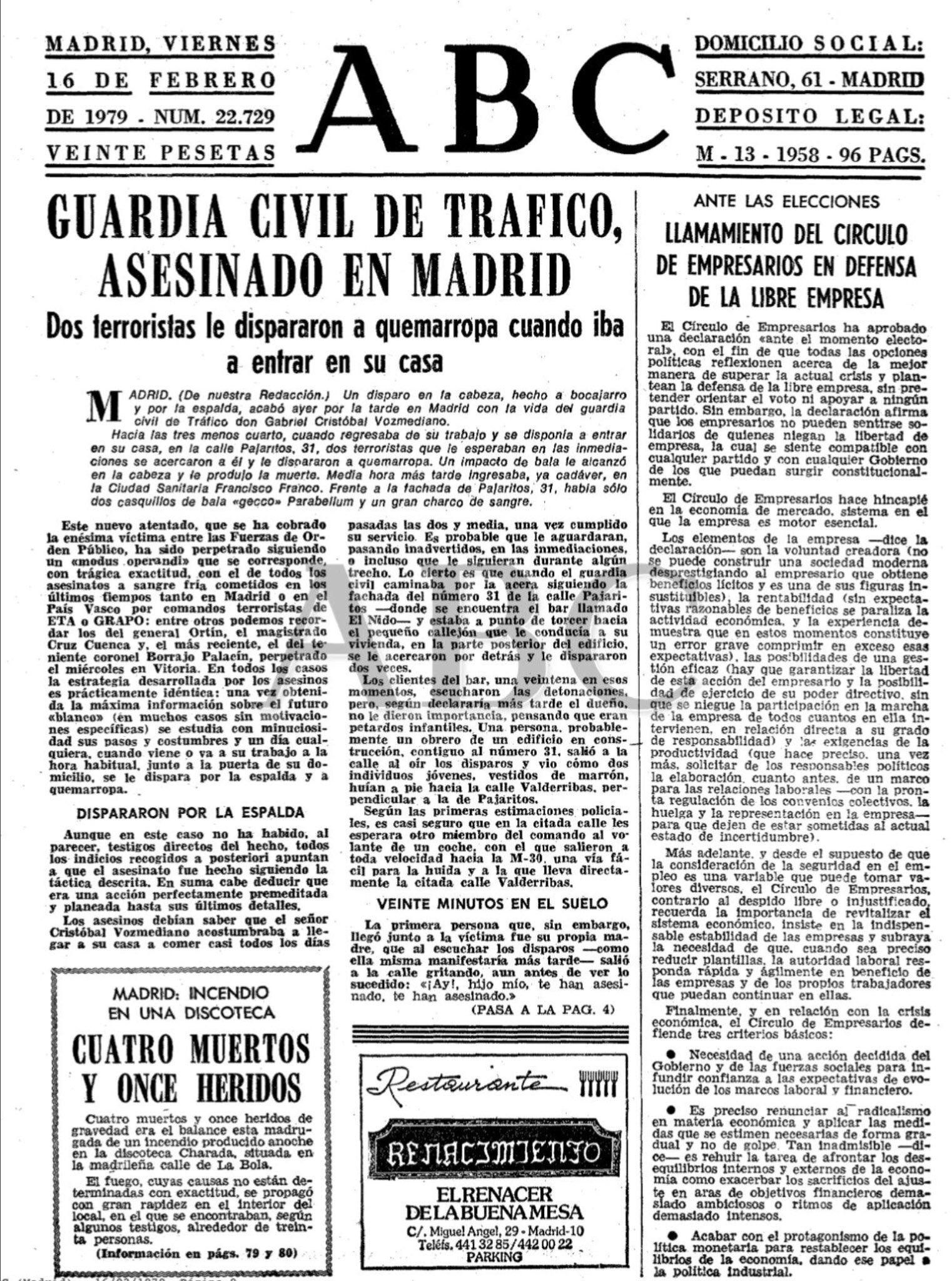 GABRIEL CRISTOBAL VOZMEDIANO , asesinado por los GRAPO en Madrid el 15 de Febrero de 1.979