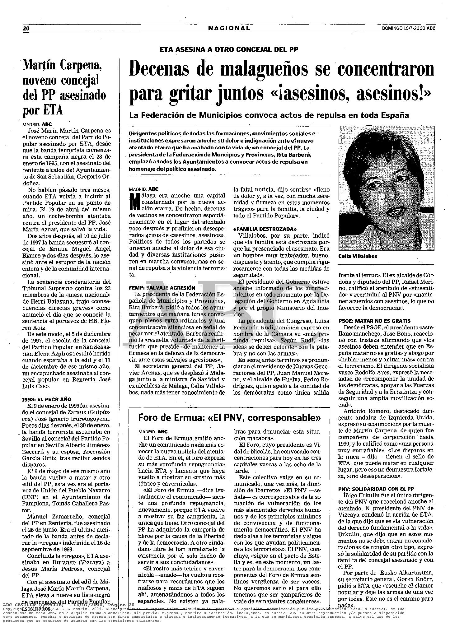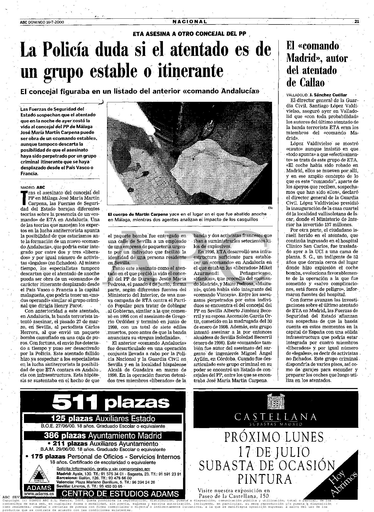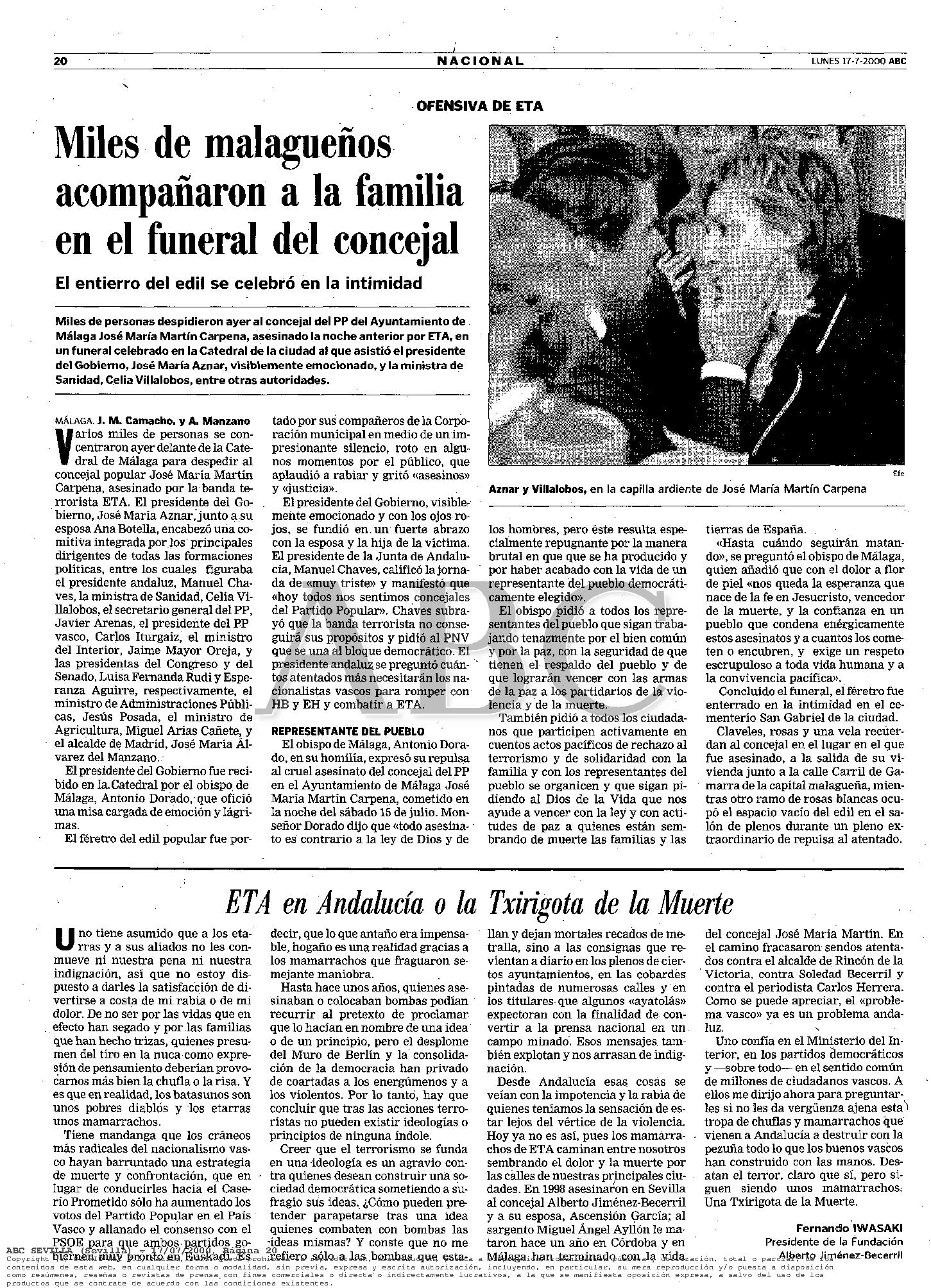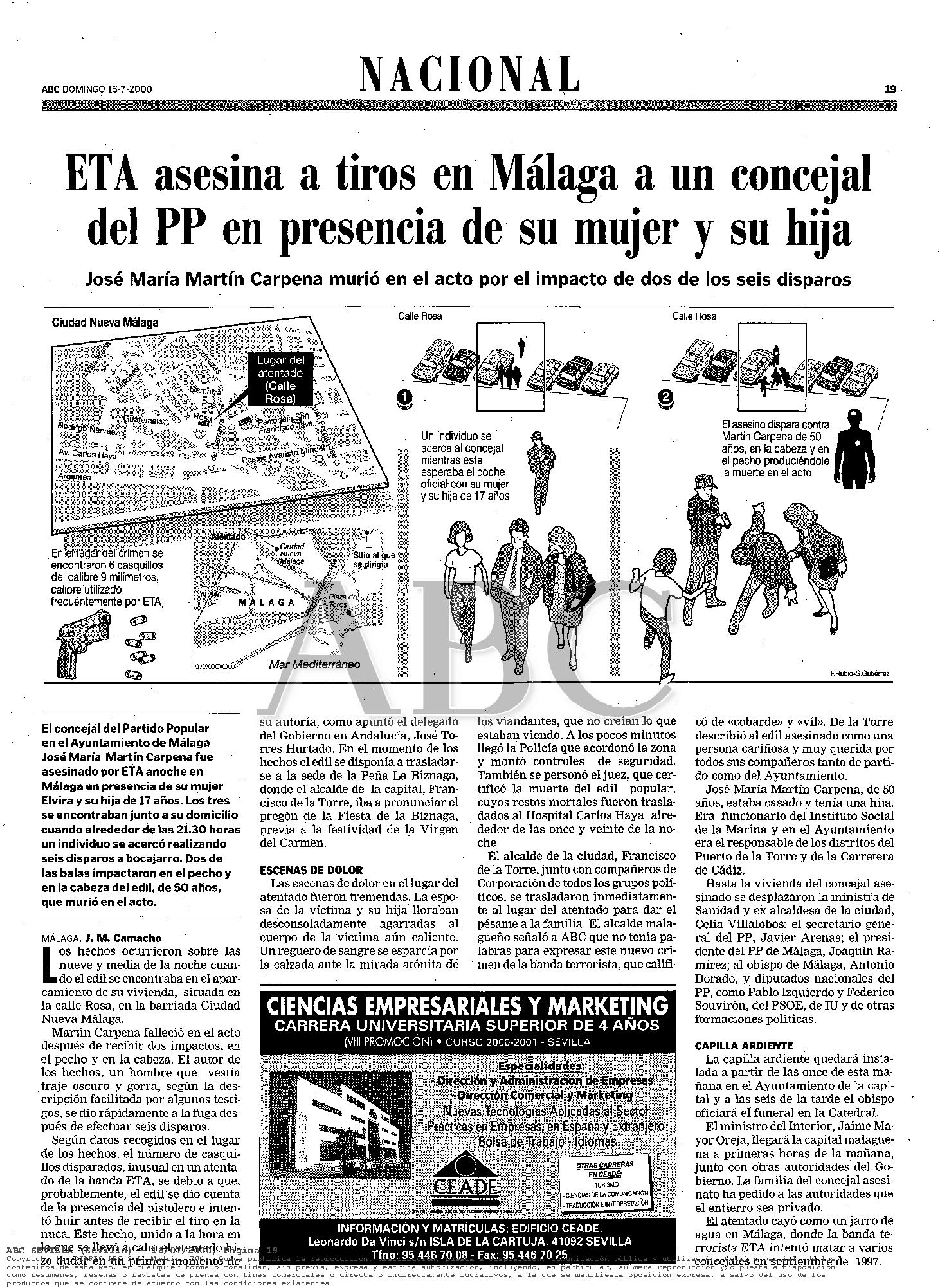 JOSÉ MARÍA MARTÍN CARPENA asesinado el 15 de julio de 2000 en Málaga.