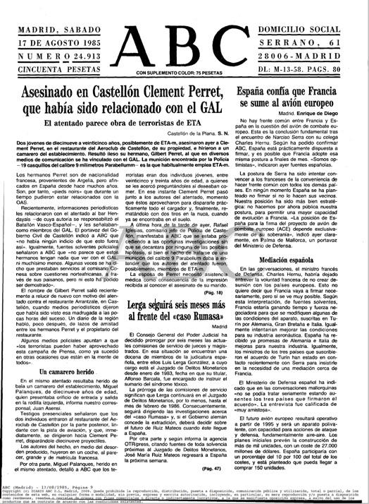 CLÉMENT PERRET asesinado el 16 de agosto de 1985 en Benicasin.