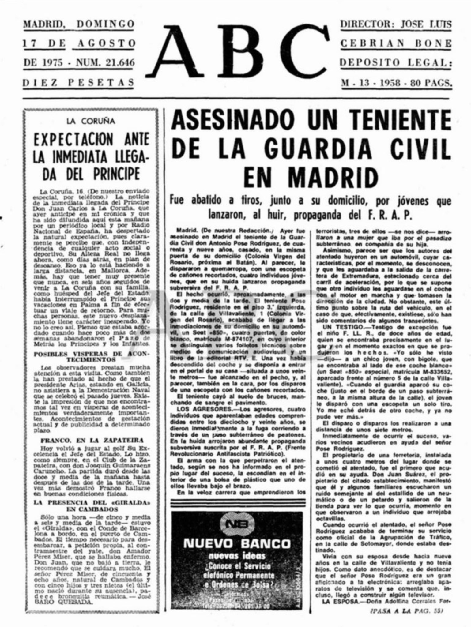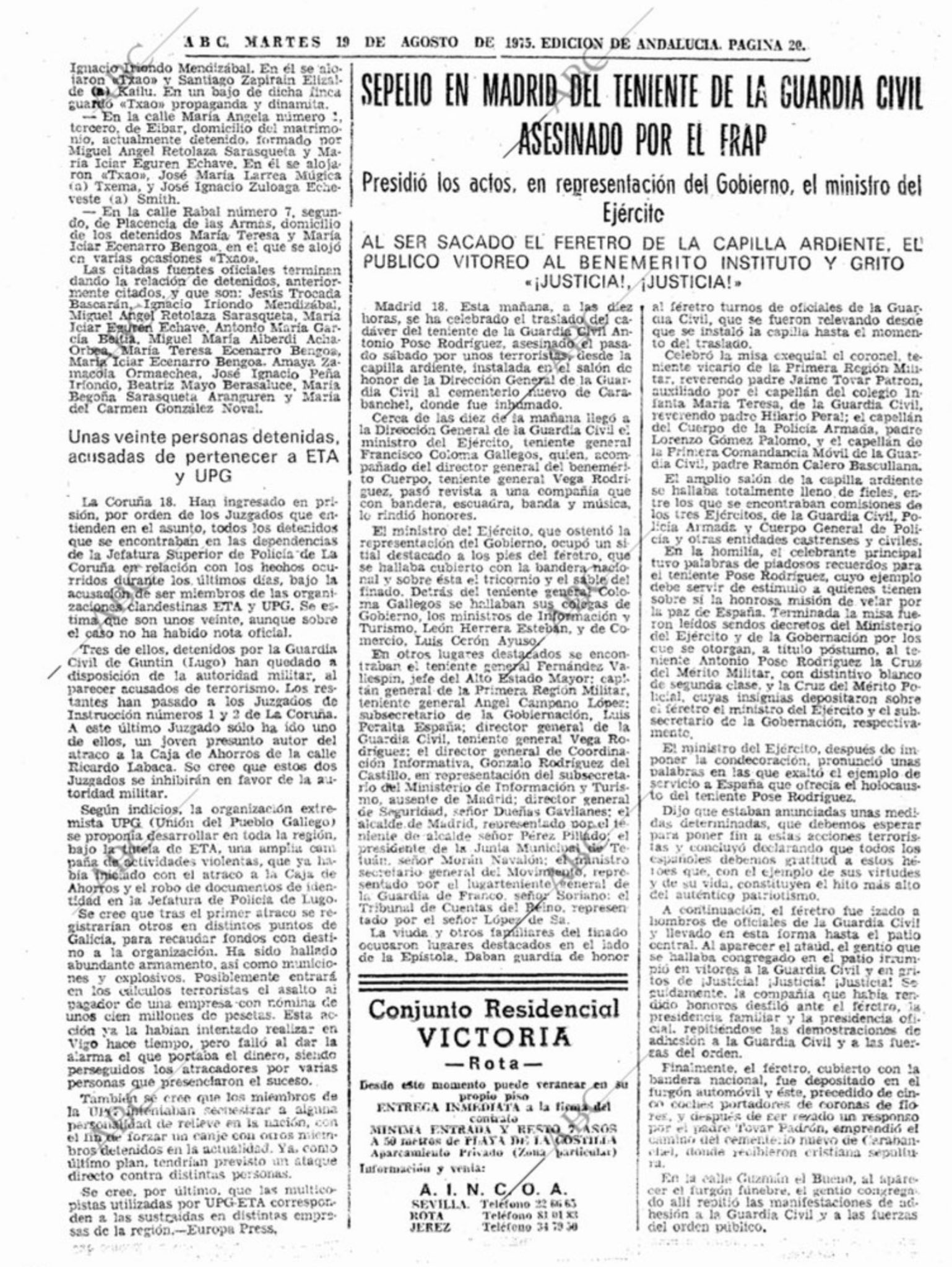 ANTONIO POSE RODRIGUEZ , asesinado en Madrid el 18 de Agosto de 1.975