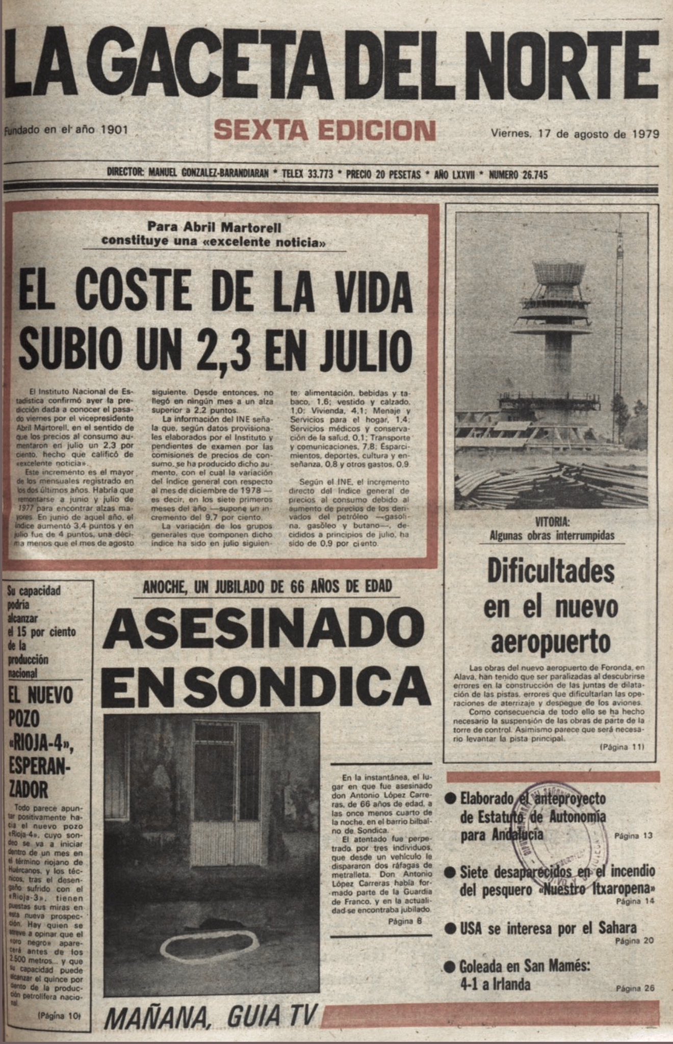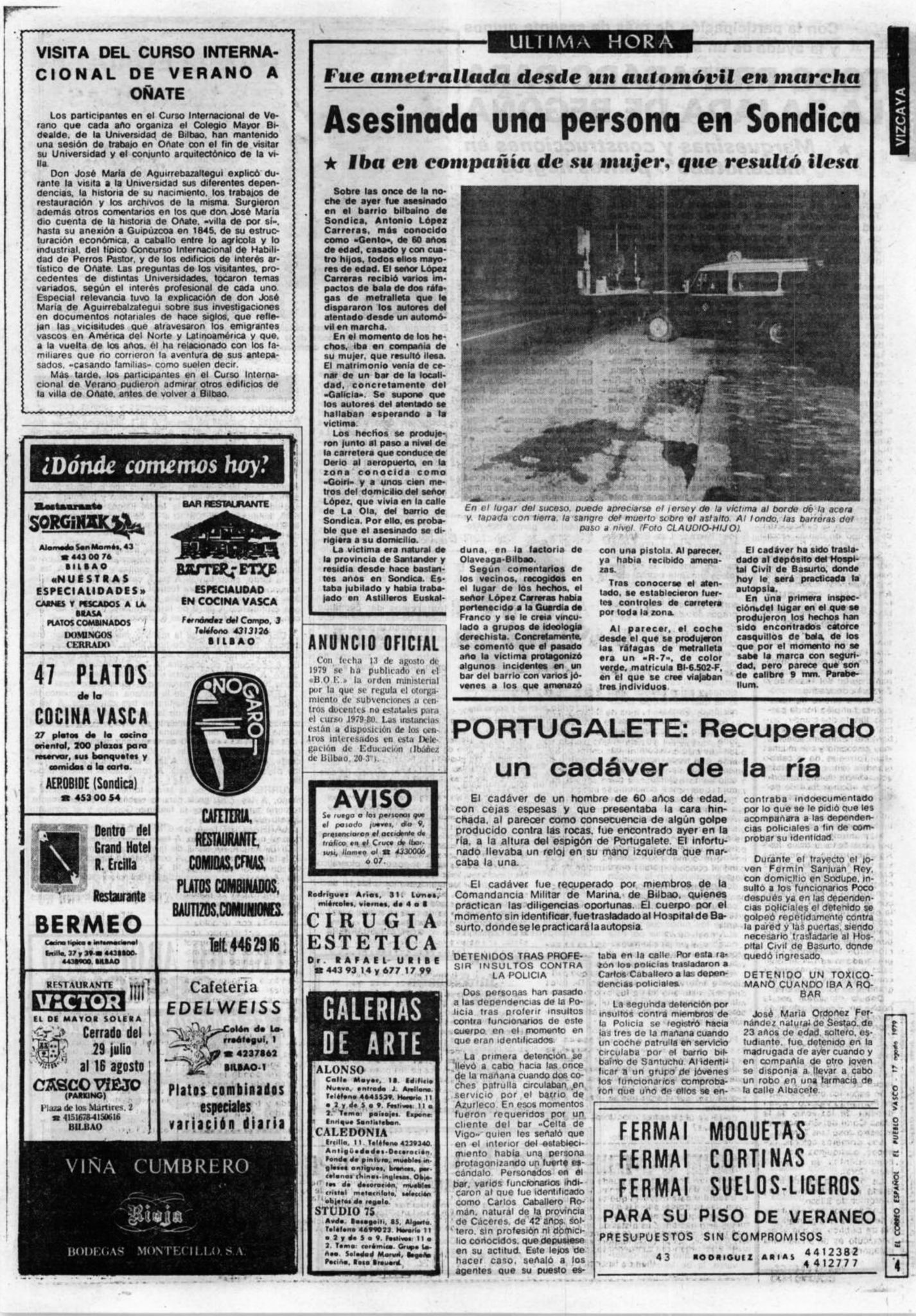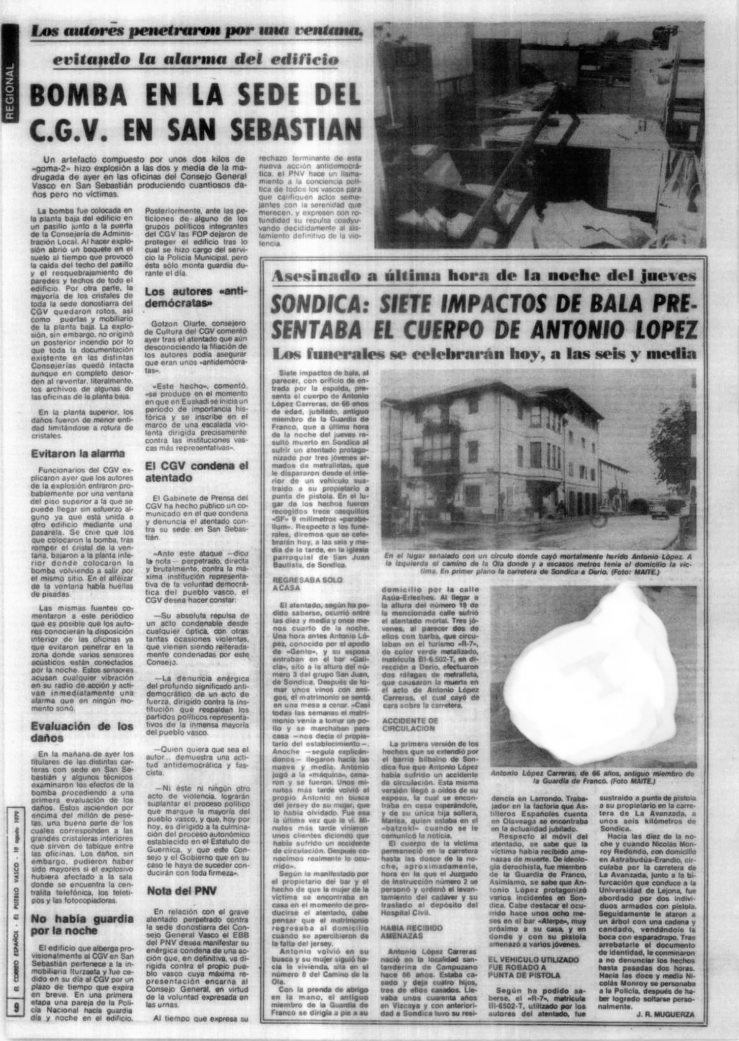 El jueves 16 de agosto de 1979, la banda terrorista ETA asesinaba a tiros en la localidad vizcaína de Sondica a ANTONIO LÓPEZ CARRERA