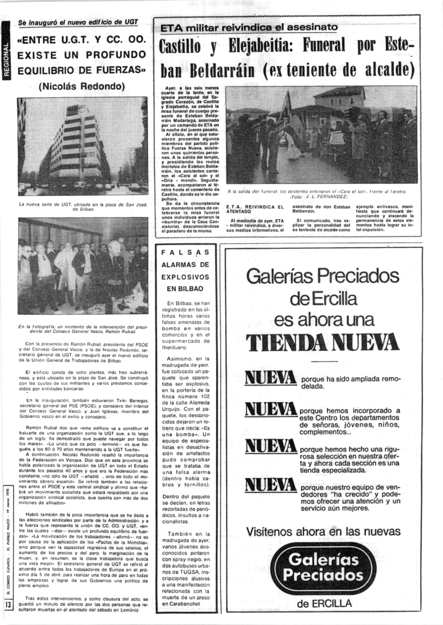 ESTEBAN BELDARRAIN MADARIAGA asesinado el 16 de marzo de 1978 en Bilbao.