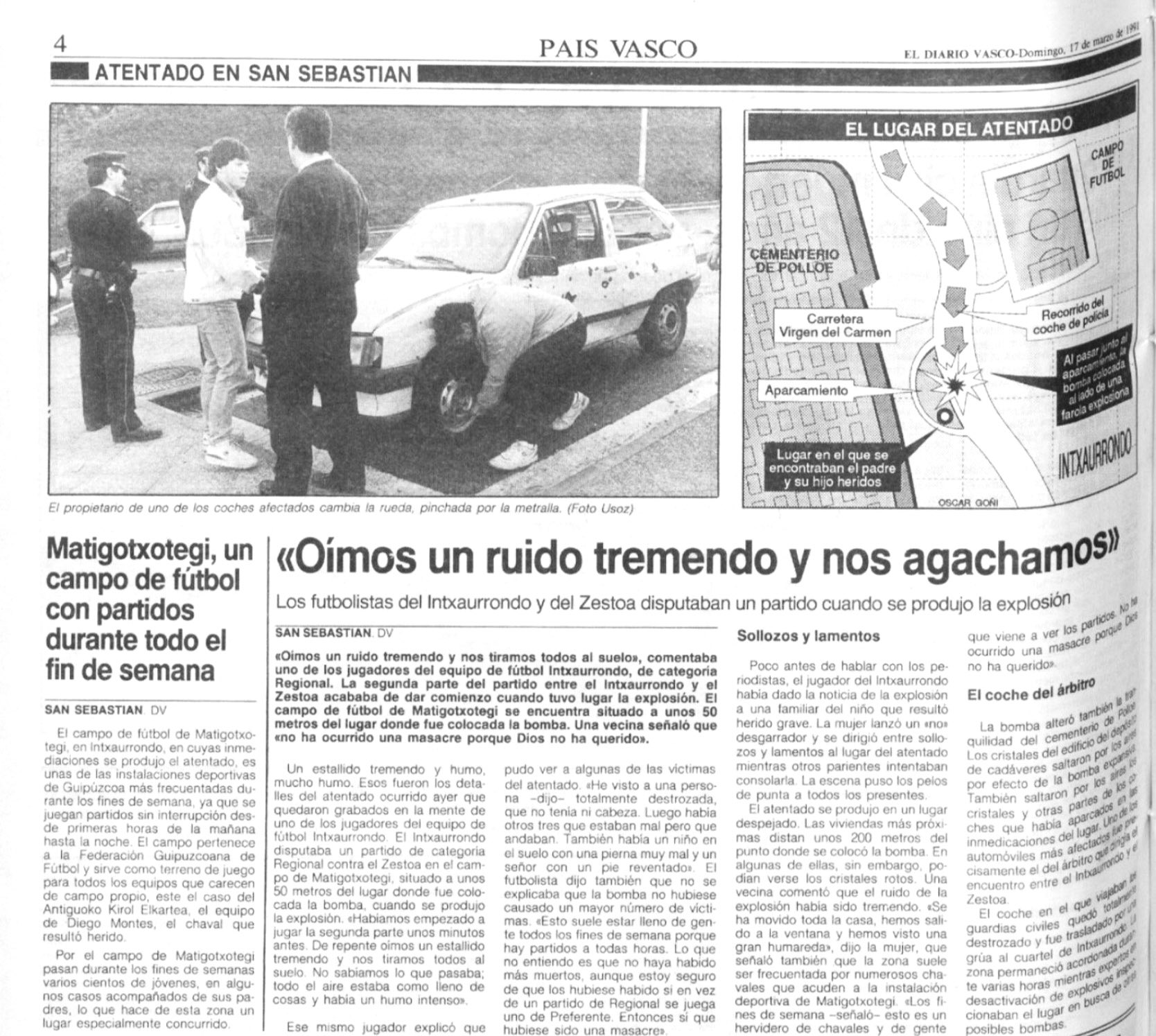 El 16 de marzo de 1991la banda terrorista ETA hacía explotar una bomba accionada a distancia al paso de un vehículo ocupado por cuatro agentes de la Guardia Civil en el barrio de Eguía de San Sebastián. Provocó la muerte de LUIS ARAGÓ GUILLÉN y heridas a otras cinco personas: sus tres compañeros, también guardias civiles, y dos transeúntes (padre e hijo).