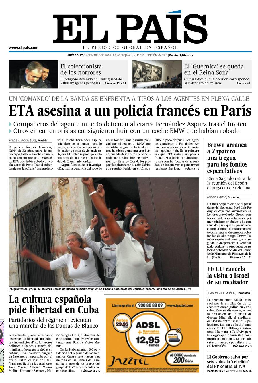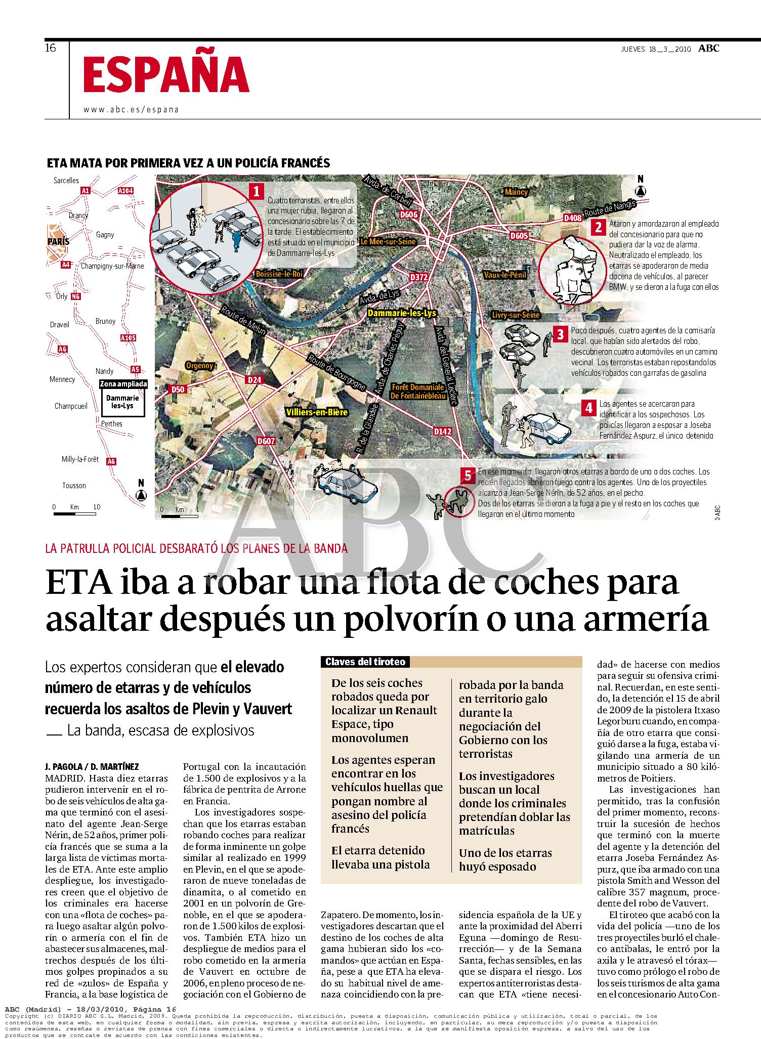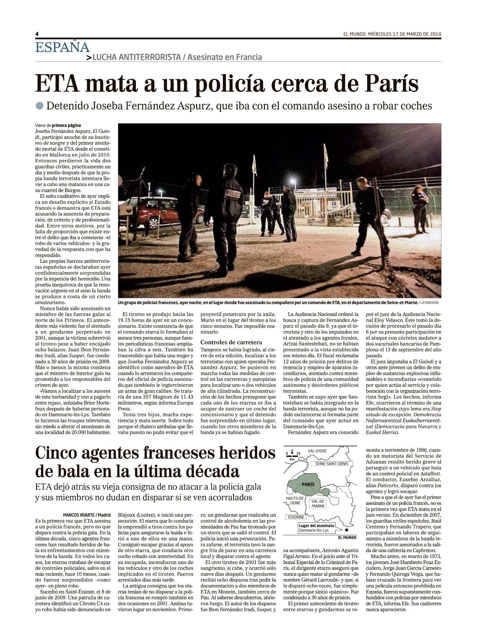 El martes 16 de marzo de 2010 moría el gendarme francés JEAN-SERGE NÉRIN tras un intercambio de disparos con varios miembros de la banda terrorista ETA.Jean-Serge Nérin recibió varios disparos al tratar de impedir que los etarras robaran un coche en un concesionario de BMW, momento en que los terroristas abrieron fuego contra él.