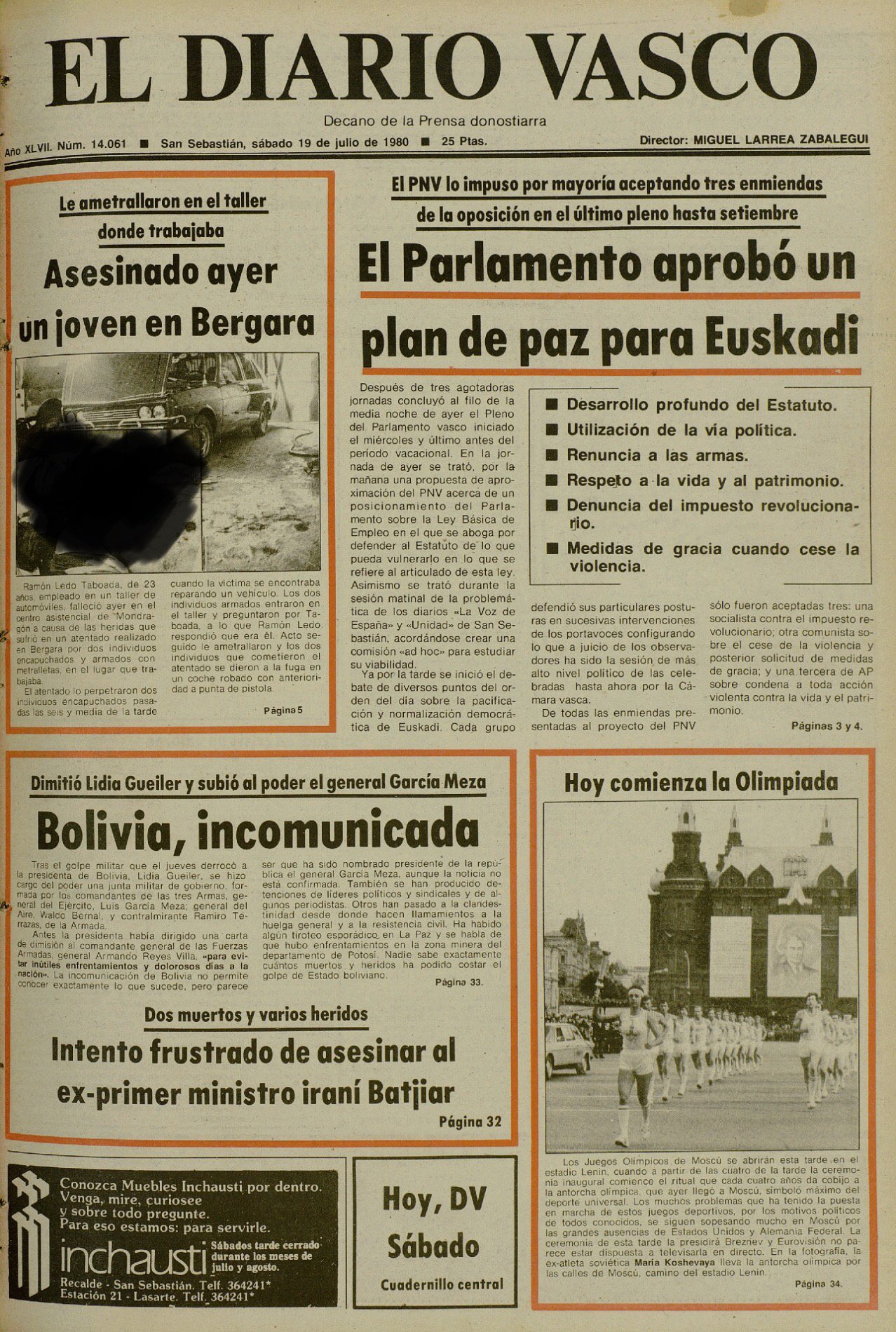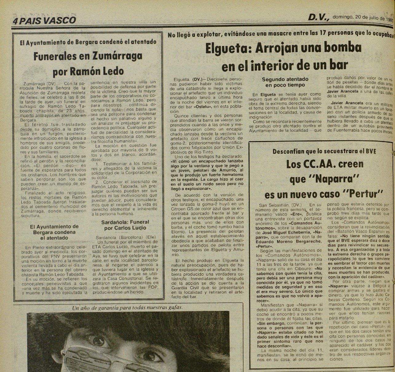 RAMÓN LEDO TABOADA asesinado el 18 de julio de 1980 en Vergara.