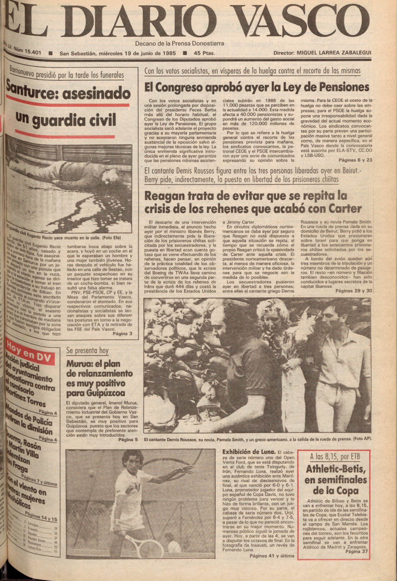 EUGENIO RECIO GARCÍA asesinado el 18 de junio de 1985 en Santurce.