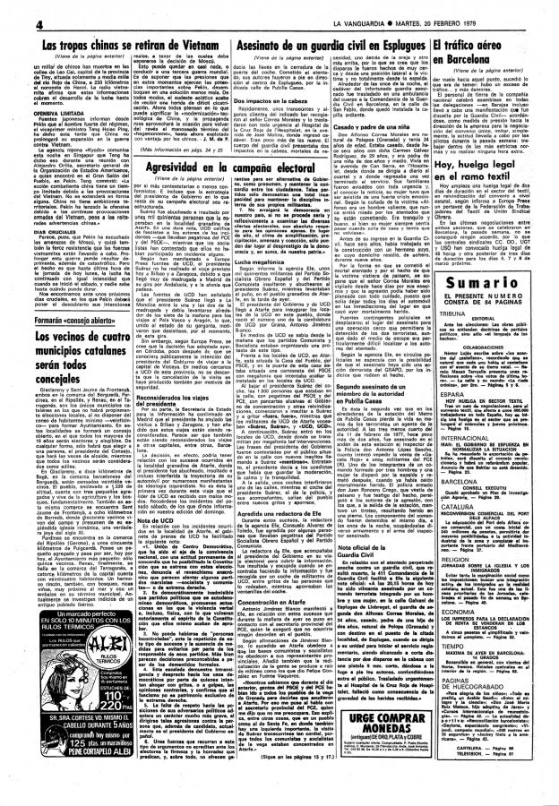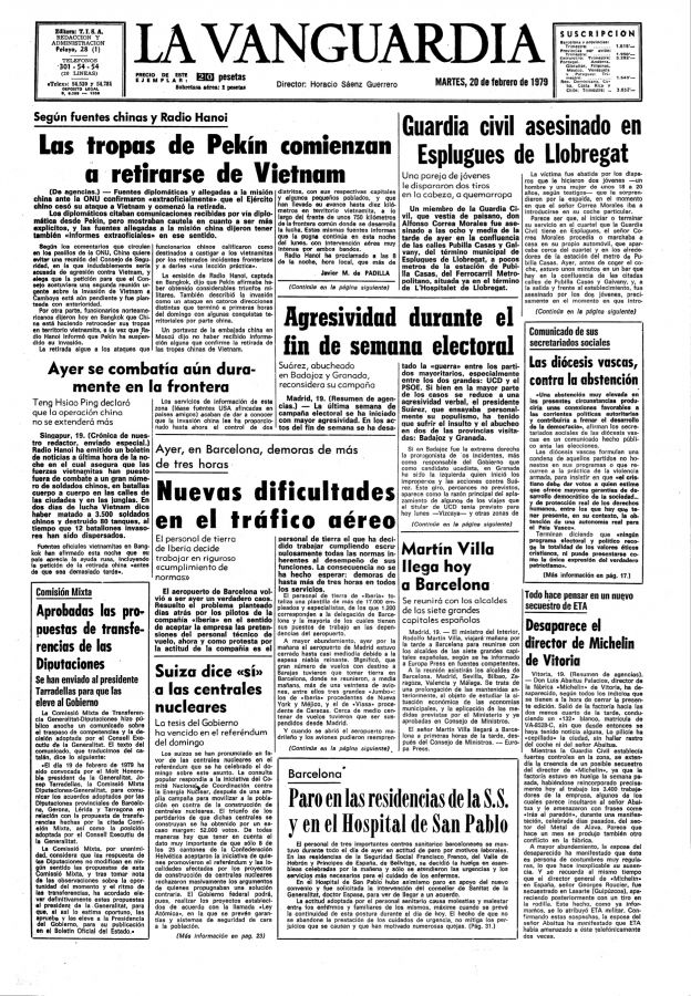 Hacia las 20.00 del 19 de febrero de 1979 dos miembros de los GRAPO dispararon en la cabeza al guardia civil Alfonso Correa Morales cuando estaba a punto de entrar en su coche tras salir de un bar. El agente iba vestido de paisano, lo cual es un indicio de que los GRAPO le tenían vigilado. Alfonso Correa Morales pertenecía a un cuartel de Esplugues y fue atacado cerca de la estación del ferrocarril metropolitano de Pubilla Casas. Murió finalmente en el hospital de Hospitalet de Llobregat.