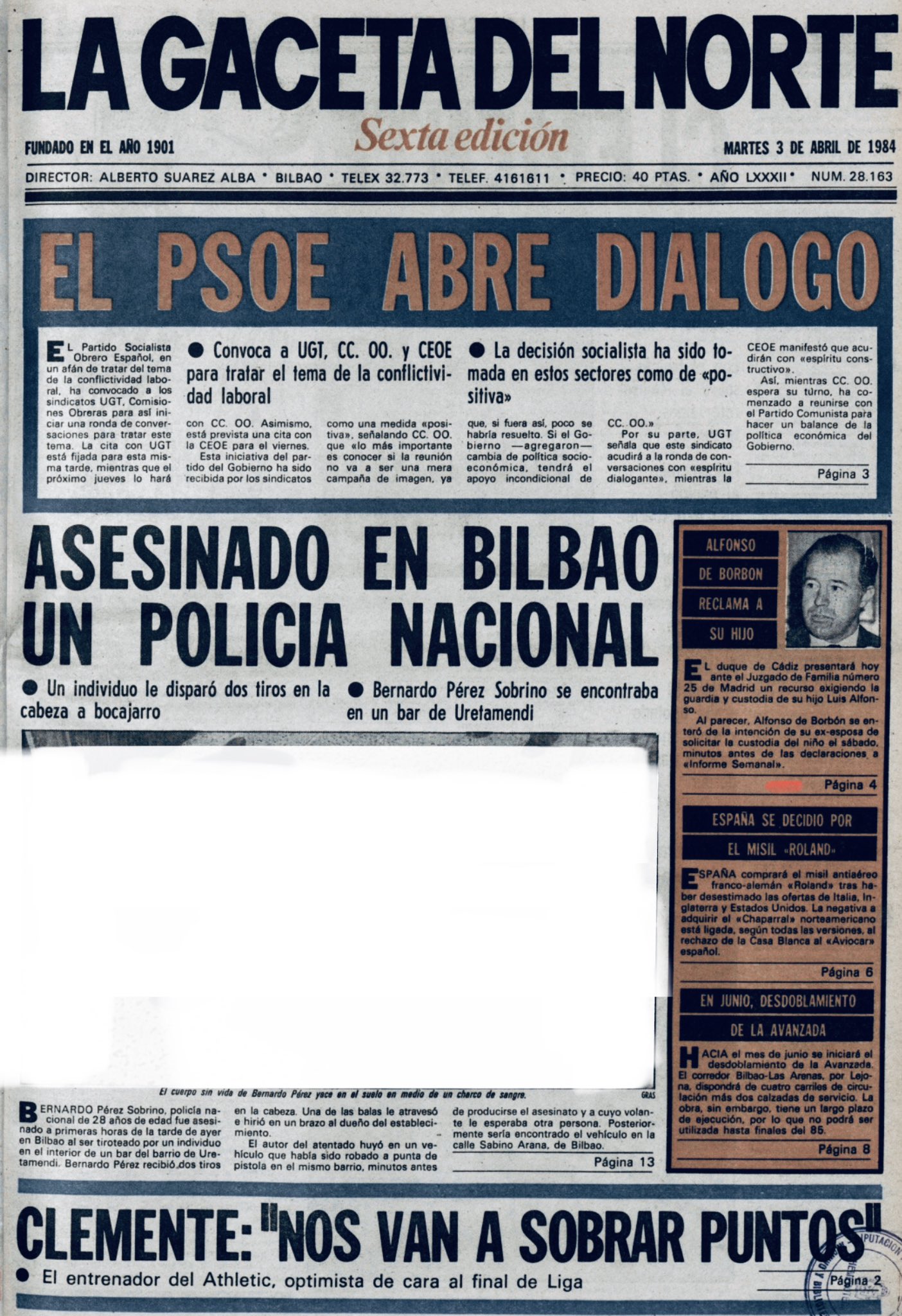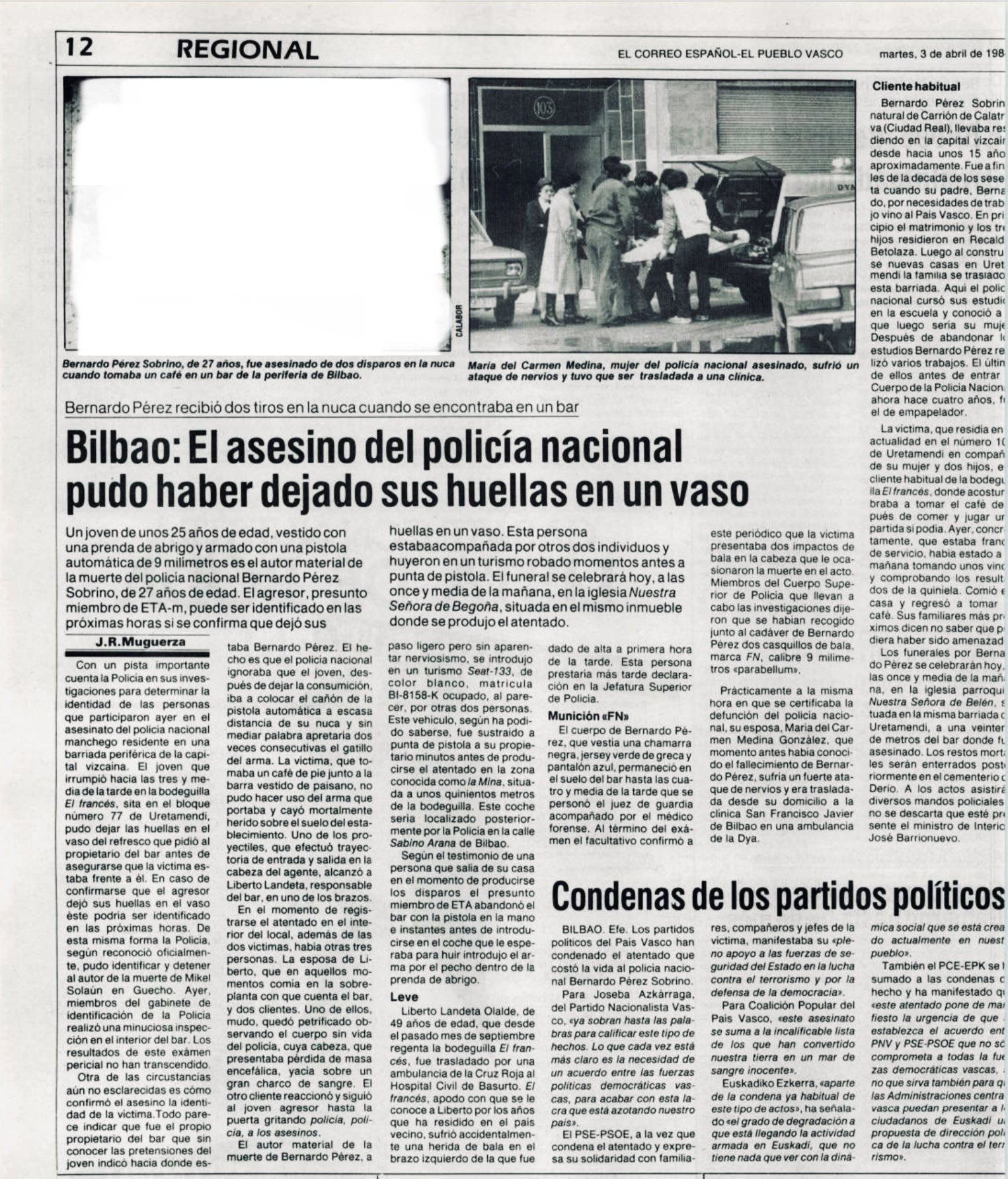 BERNARDO PÉREZ SOBRINO asesinado el 2 de abril de 1984 en Bilbao.
