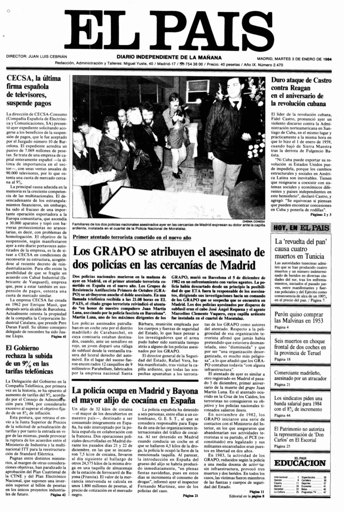 MARCELINO CLEMENTE VAQUERO , asesinado en Madrid por el GRAPO el 2 de Enero de 1984