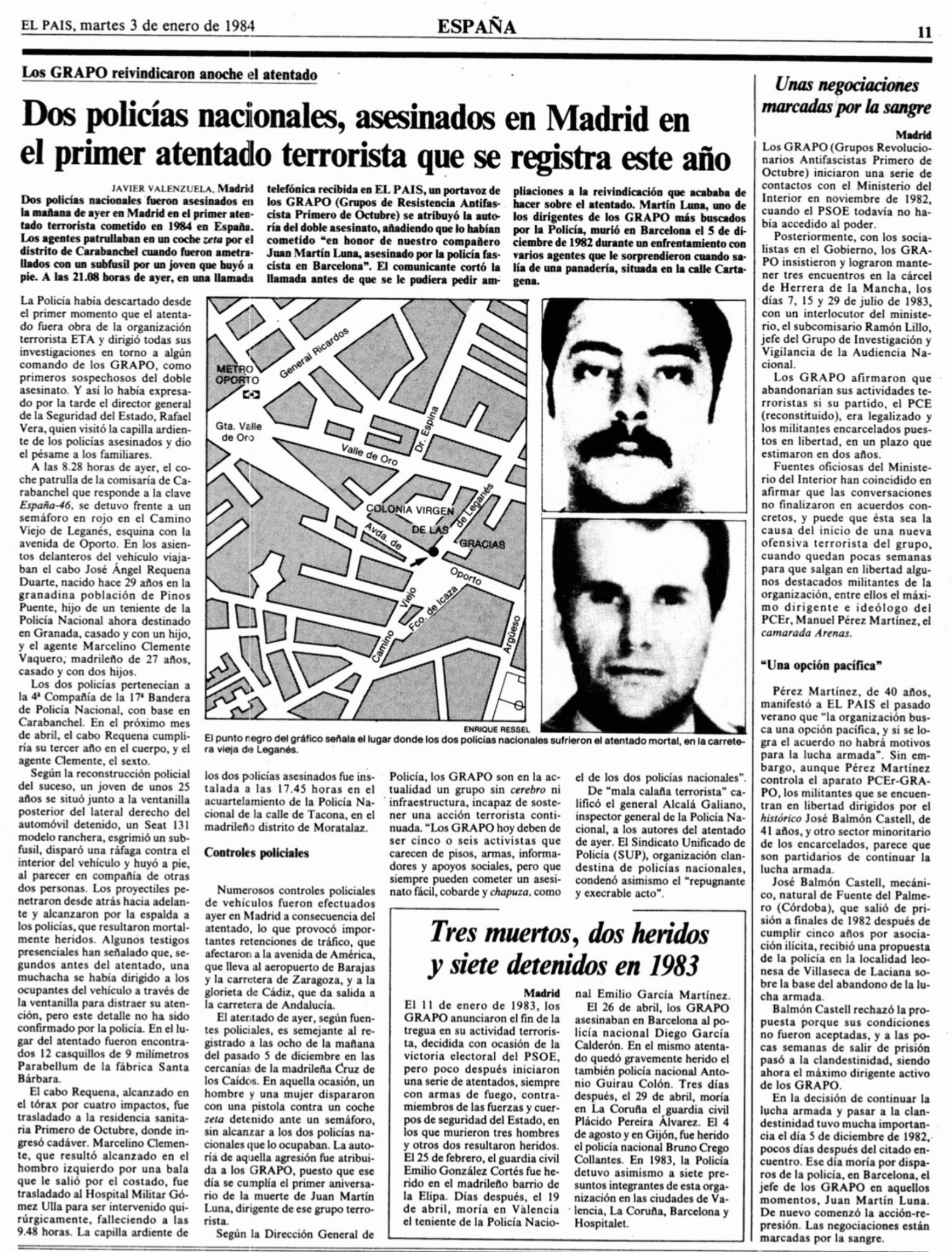 JOSE ANGEL REQUENA DUARTE , asesinado en Madrid por el GRAPO el 2 de Enero de 1984