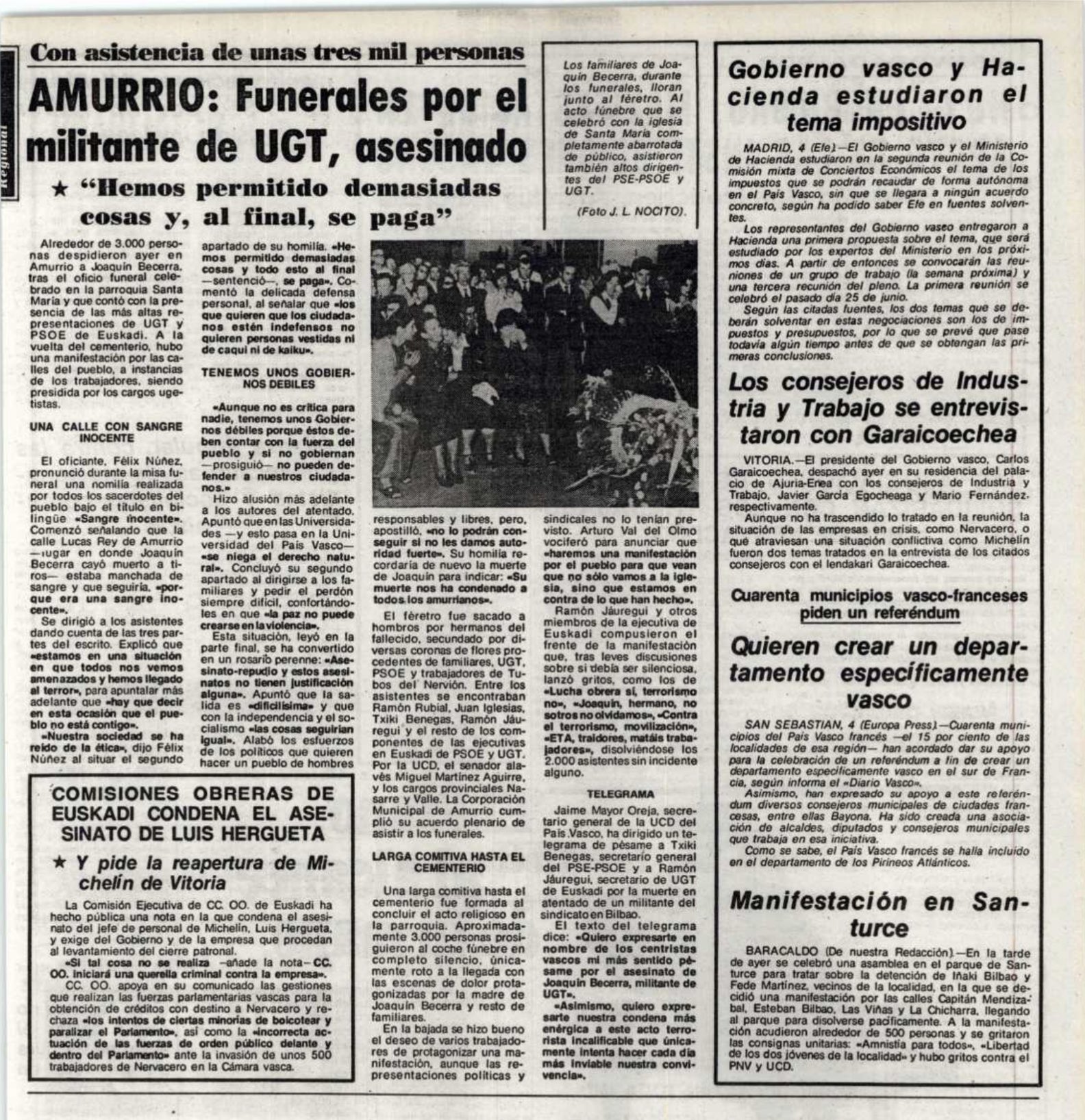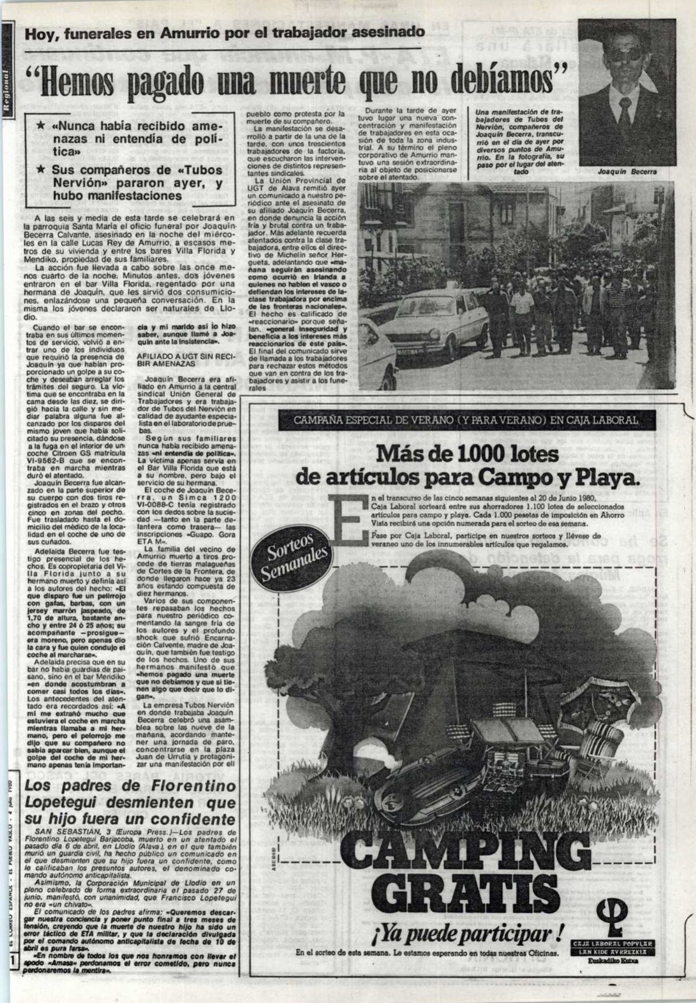 JOAQUÍN BECERRA CALVENTE asesinado el 2 de julio de 1980 en Amurrio.