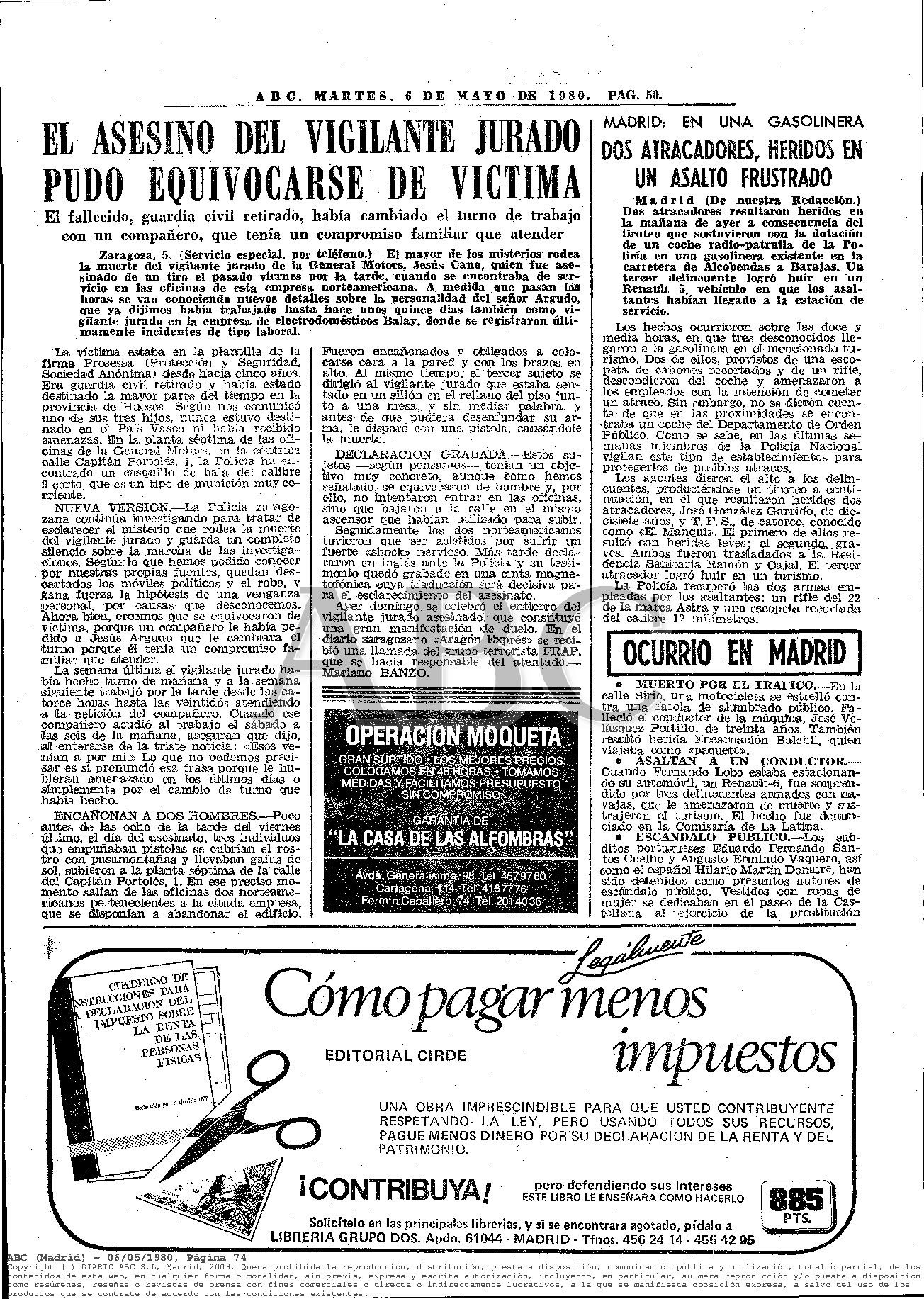 JESUS ARGUDO CANO, asesinado por el FRAVA el 2 de Mayo de 1.980 en Zaragoza