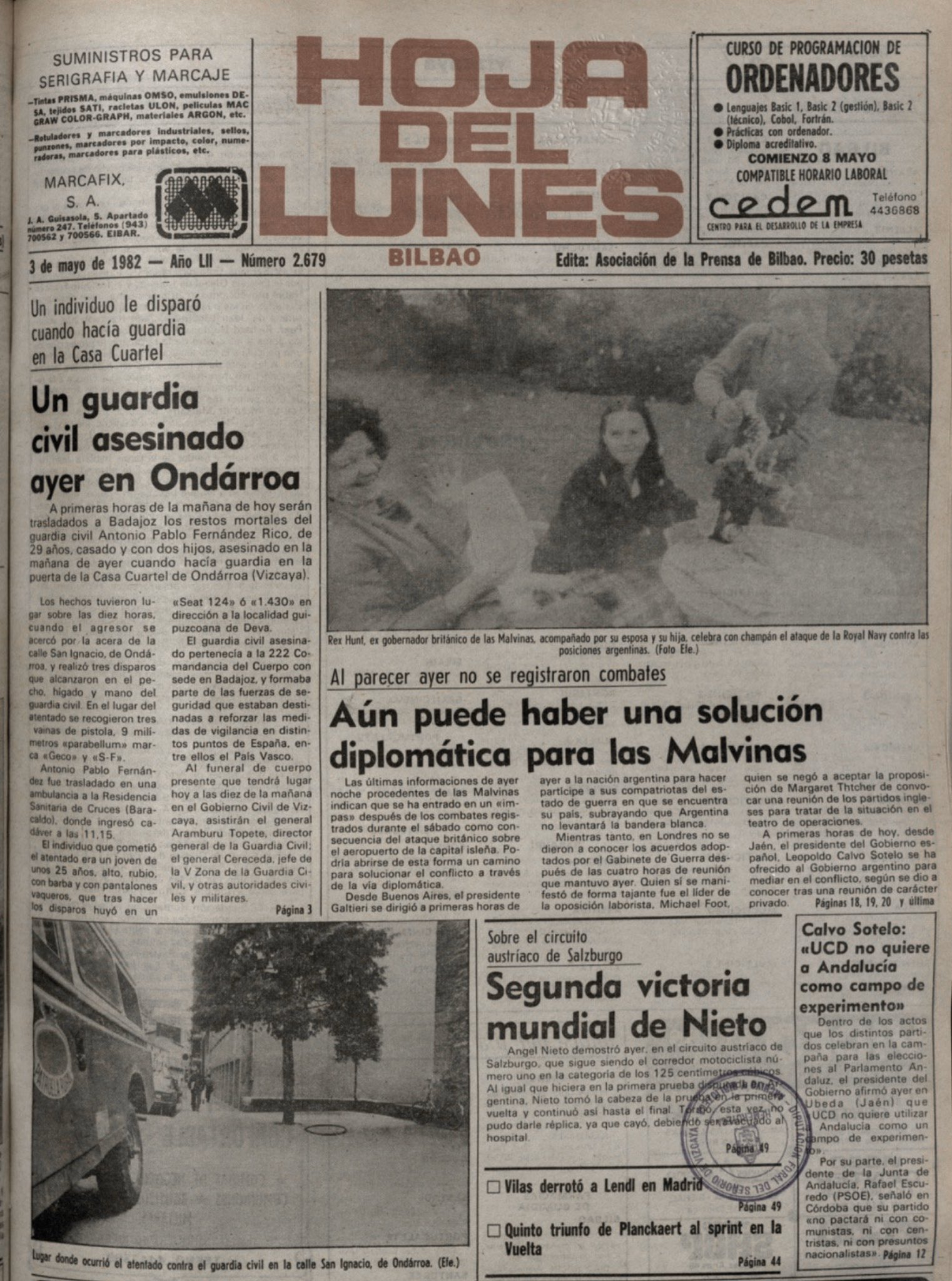 ANTONIO PABLO FERNÁNDEZ RICO asesinado el 2 de mayo de 1982 en Ondarroa.