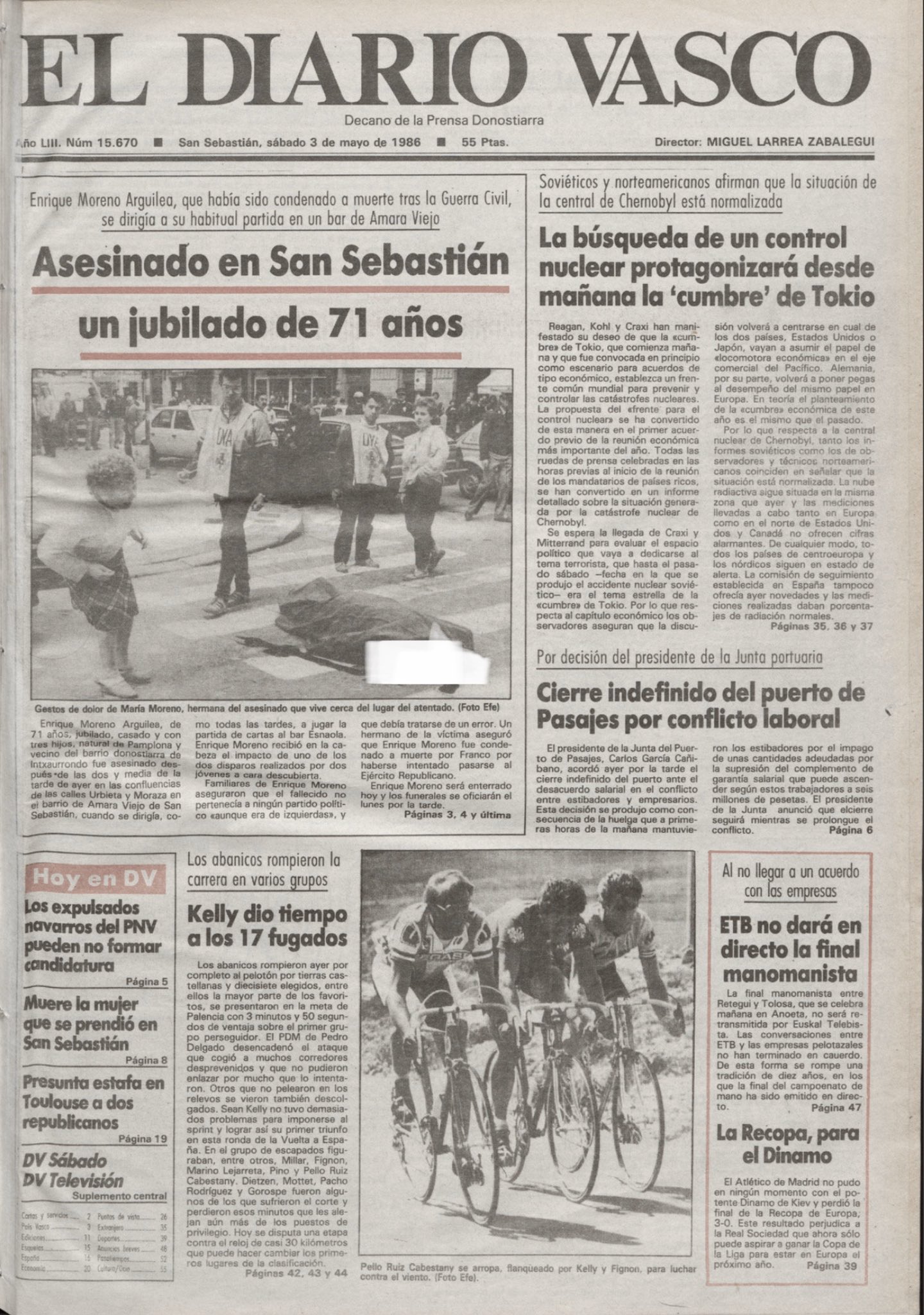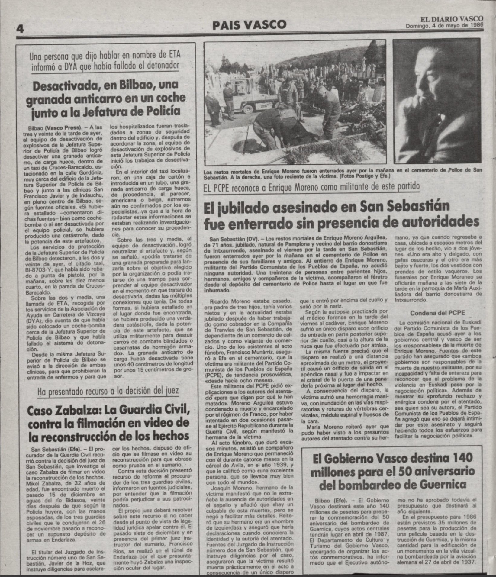 ENRIQUE MORENO ARGUILEA asesinado el 2 de mayo de 1986 en san Sebastián