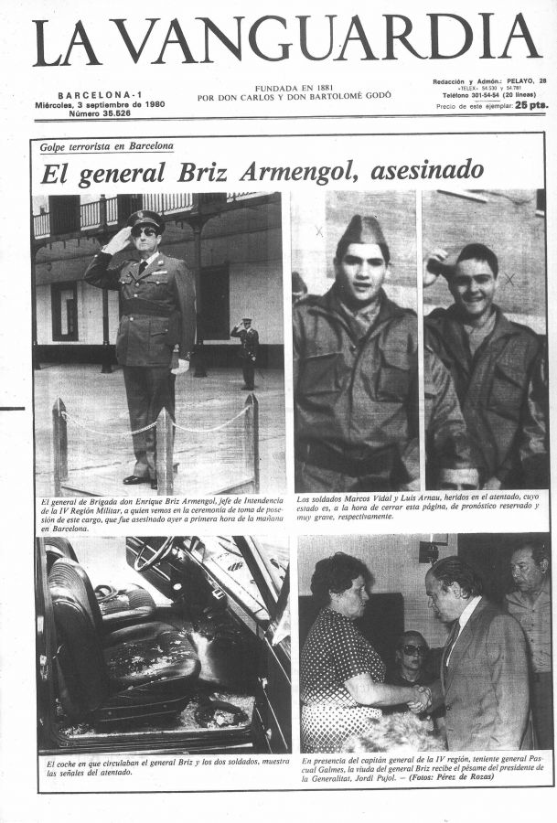 A las 8.30 de la mañana del 2 de septiembre de 1980 dos terroristas de los GRAPO dispararon contra el coche oficial del general Enrique Briz Armengol, asesinándolo de inmediato e hiriendo de gravedad a su escolta, Marcos Vidal Pinar, de diecinueve años, y a su conductor, Luis Arnáu Daví. El atentado fue cometido en el barrio de Les Corts, en la parte alta de Barcelona, a la altura del inmueble 81-85 de Carlos III. El escolta Marcos Vidal Pinar también falleció finalmente a causa de las heridas del atentado. El conductor del coche consiguió salvar su vida.