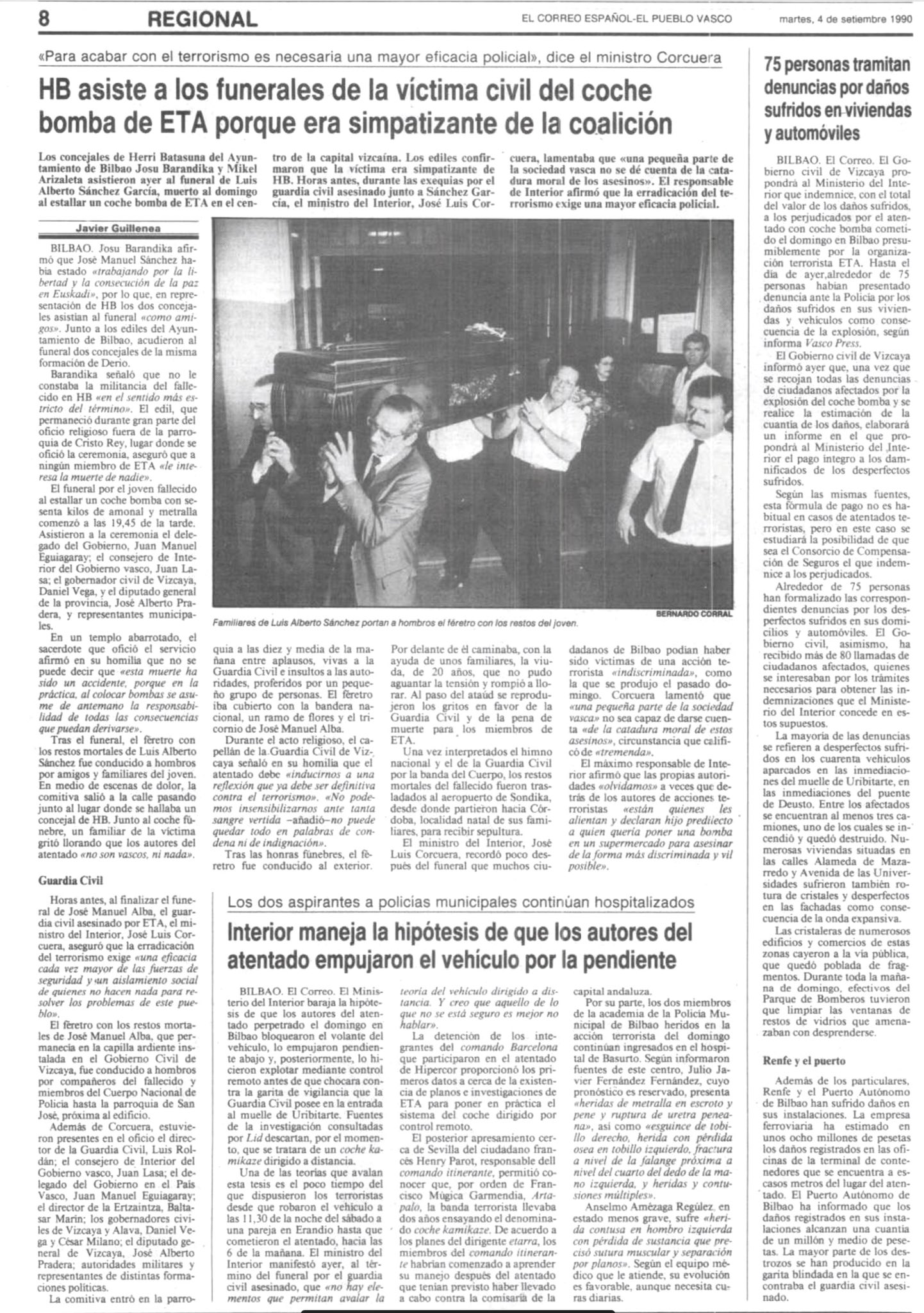 Luis Alberto Sánchez García, de 28 años, era natural de Baracaldo (Vizcaya). Era simpatizante de Herri Batasuna, y concejales de esta coalición proetarra en el Ayuntamiento de Bilbao asistieron al funeral celebrado en la Iglesia de Cristo Rey de la capital vizcaína.