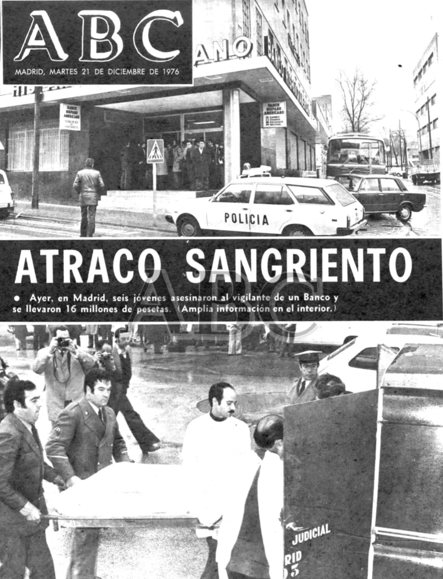Quedaban quince minutos para que dieran las 10.00 de la mañana cuando cinco jóvenes armados y a cara descubierta entraron en la sucursal del Banco Hispano Americano situada en la calle Emilio Muñoz. Advirtieron que se disponían a perpetrar un atraco y ordenaron a los 18 empleados de la entidad, a los 4 clientes y al vigilante de seguridad, Policronio Chillón, que se tumbaran bocabajo en el suelo. Mientras uno de los jóvenes se hacía con el botín, que ascendió a 16 millones de pesetas (unos 96.000 euros), los demás apuntaban con sus metralletas a los rehenes. Según contarían algunos de ellos, el vigilante de seguridad, agente de la Guardia Civil retirado, hizo entonces un movimiento al que uno de los asaltantes respondió descargando su metralleta sobre él. Le disparó entre ocho y diez tiros que acabaron al instante con su vida. Más tarde se sabría que los jóvenes eran miembros de los GRAPO.