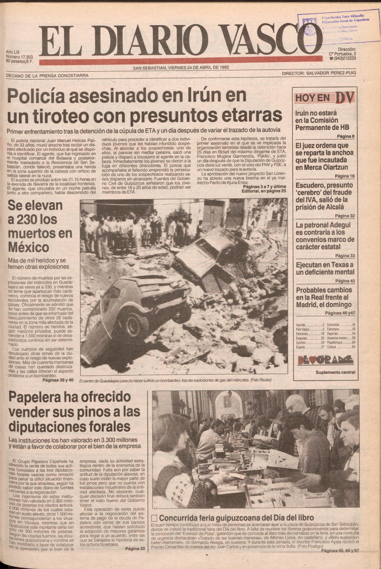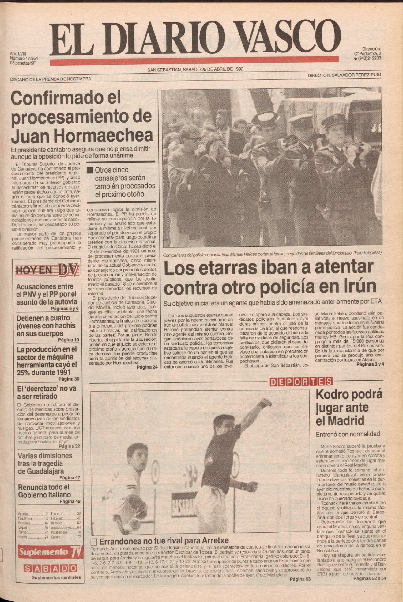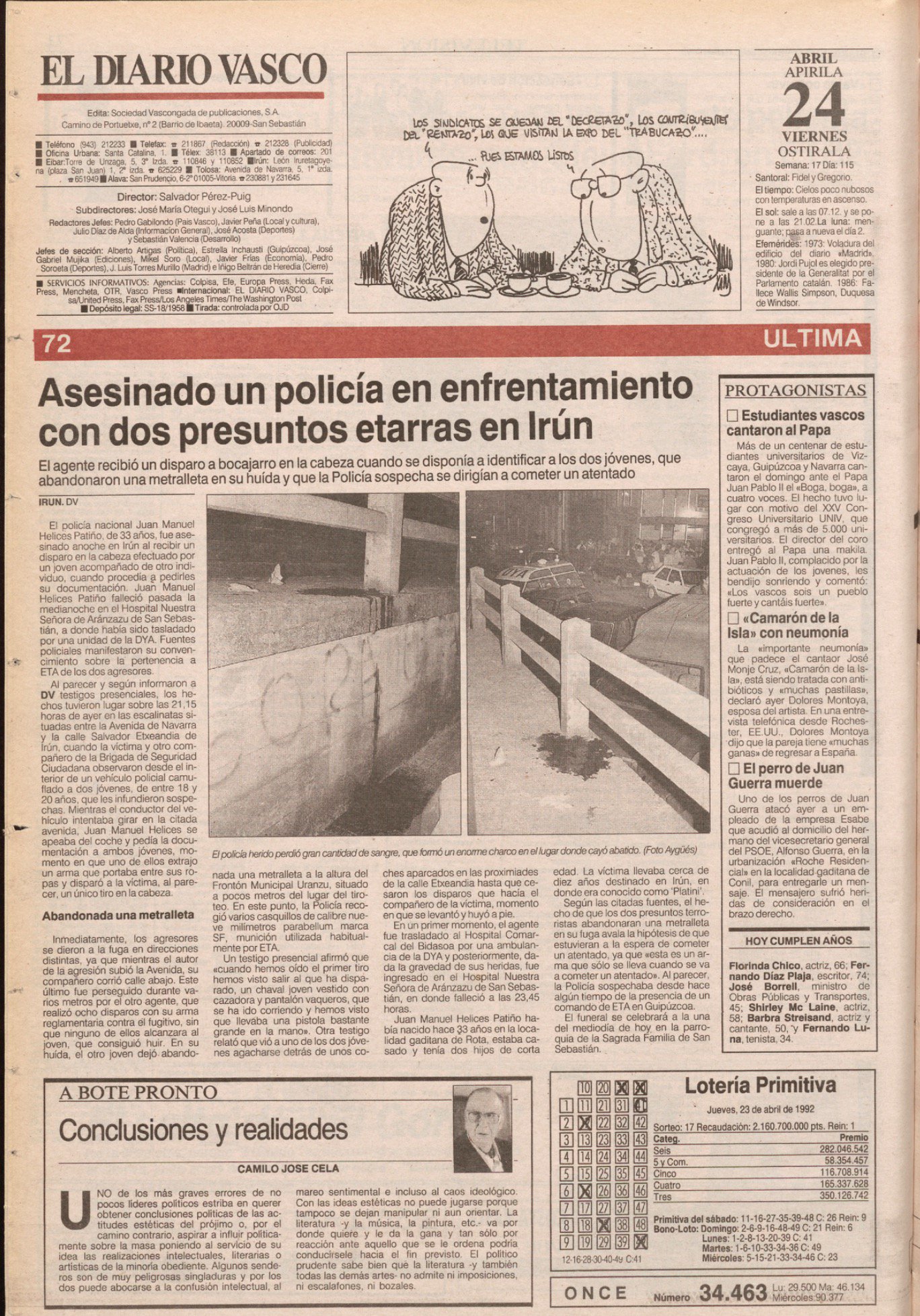 El 23 de abril de 1992, pasadas las nueve de la noche, un policía fuera de servicio, dirigente del sindicato Unión Federal de Policía (UFP), observó a dos individuos que le infundieron sospechas mientras paseaba por las calles de Irún. Decidió comunicarlo al 091, que envió a dos agentes en un coche patrulla camuflado de la Brigada de Seguridad Ciudadana de la Policía Nacional.