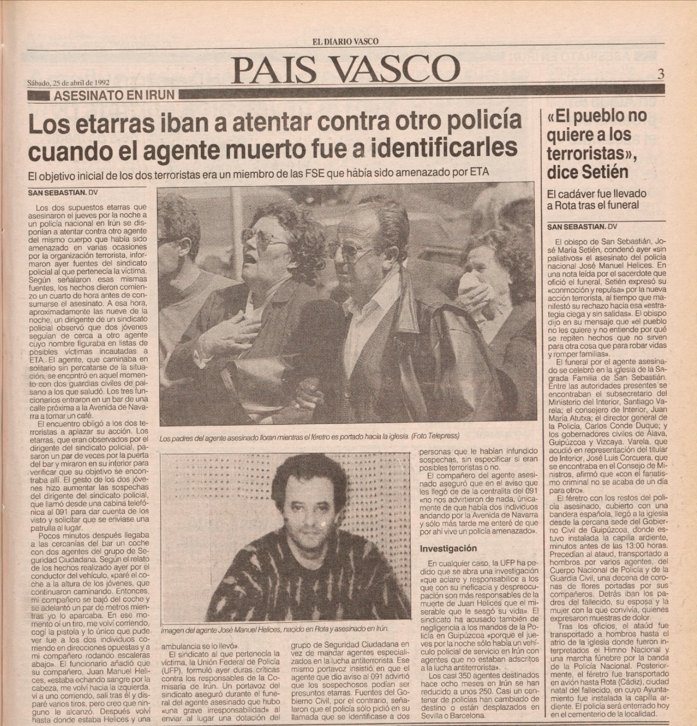 JUAN MANUEL HELICES PATINO Asesinado el 23 de Abril de 1992 en Irún