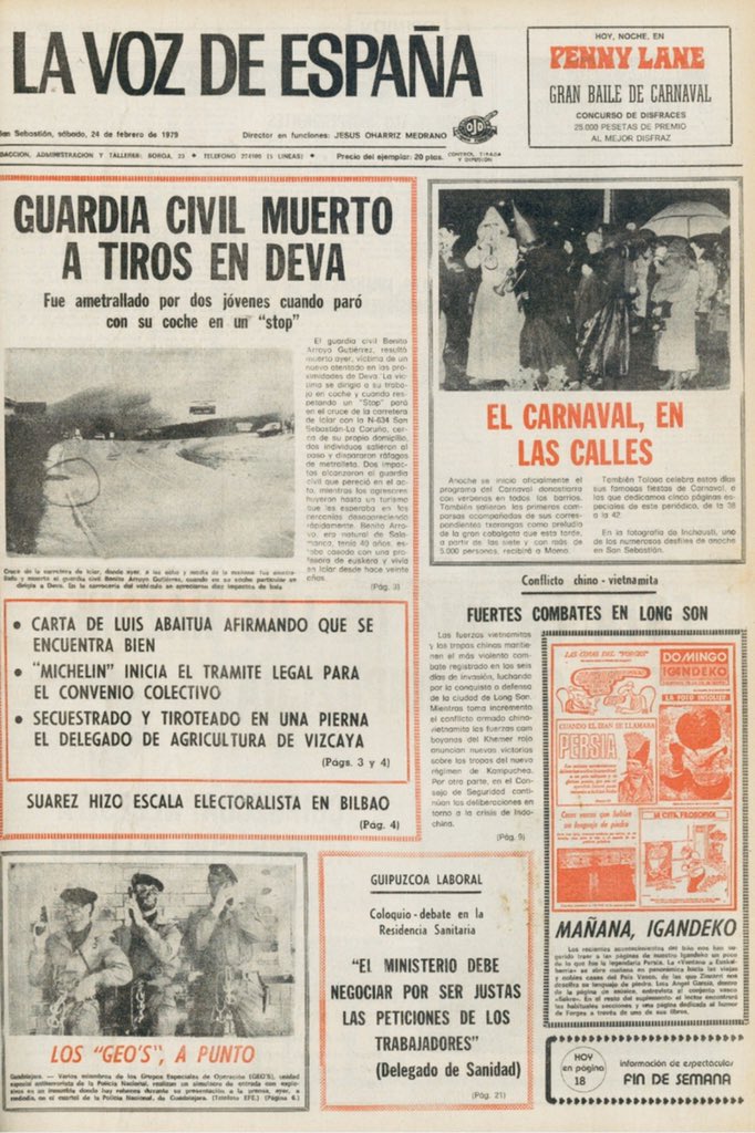 A las 8:30 horas del viernes 23 de febrero de 1979, dos miembros de la banda terrorista ETA, armados con metralletas, asesinaban al guardia civil BENITO ARROYO GUTIÉRREZ cuando se desplazaba en su automóvil particular desde su residencia de Icíar al cuartel de la Guardia Civil en Deba (Guipúzcoa), en el que trabajaba desde hacía más de veinte años.