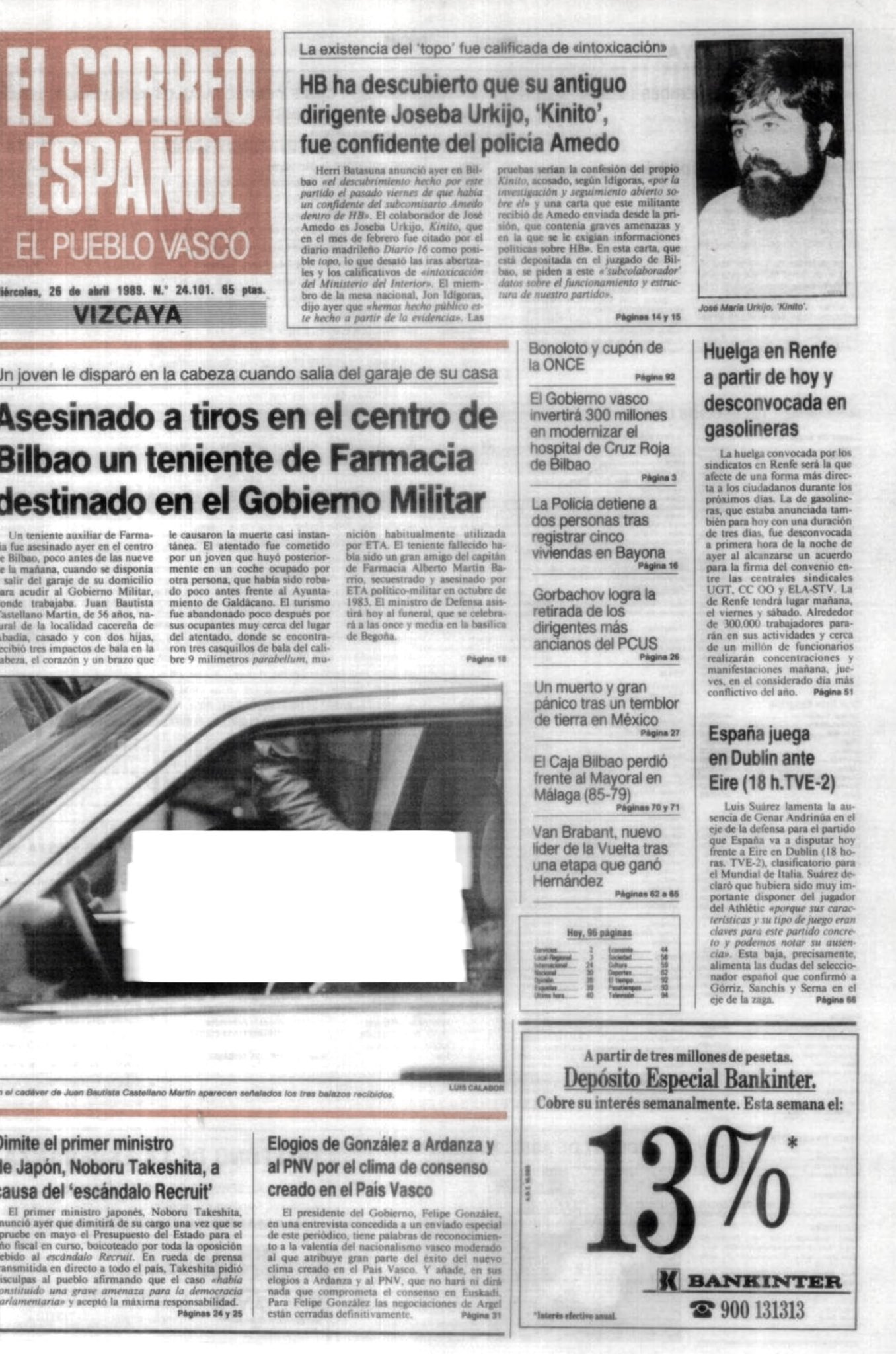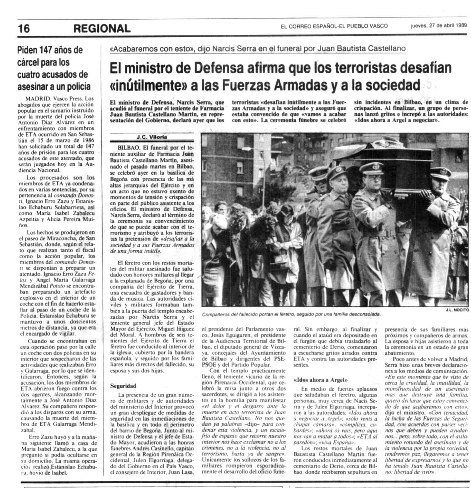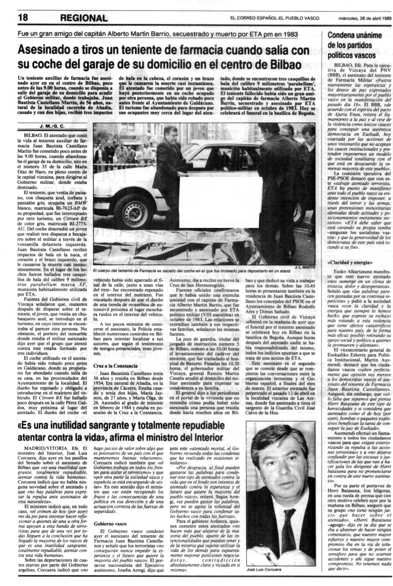 JUAN BAUTISTA CASTELLANOS MARTÍN asesinado el 25 de abril de 1989 en Bilbao.