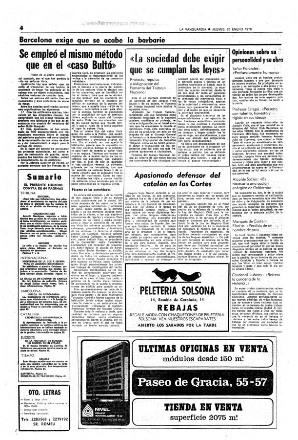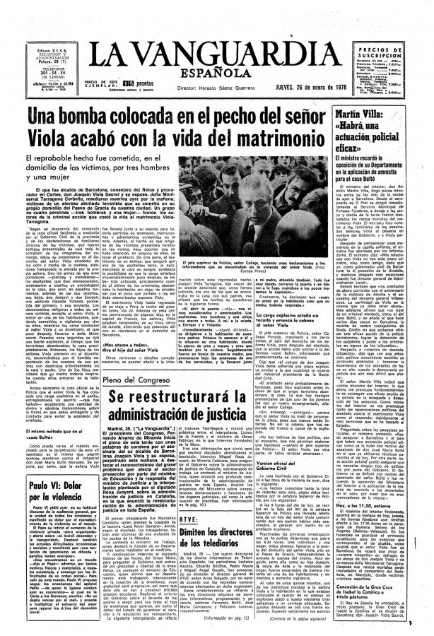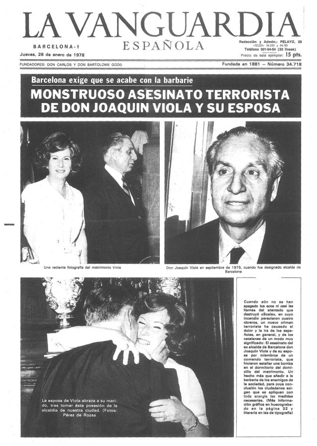 JOAQUIN VIOLA SAURENT, asesinado por el Exèrcit Popular Català (EPOCA) el 25 de Enero de 1978 en Barcelona