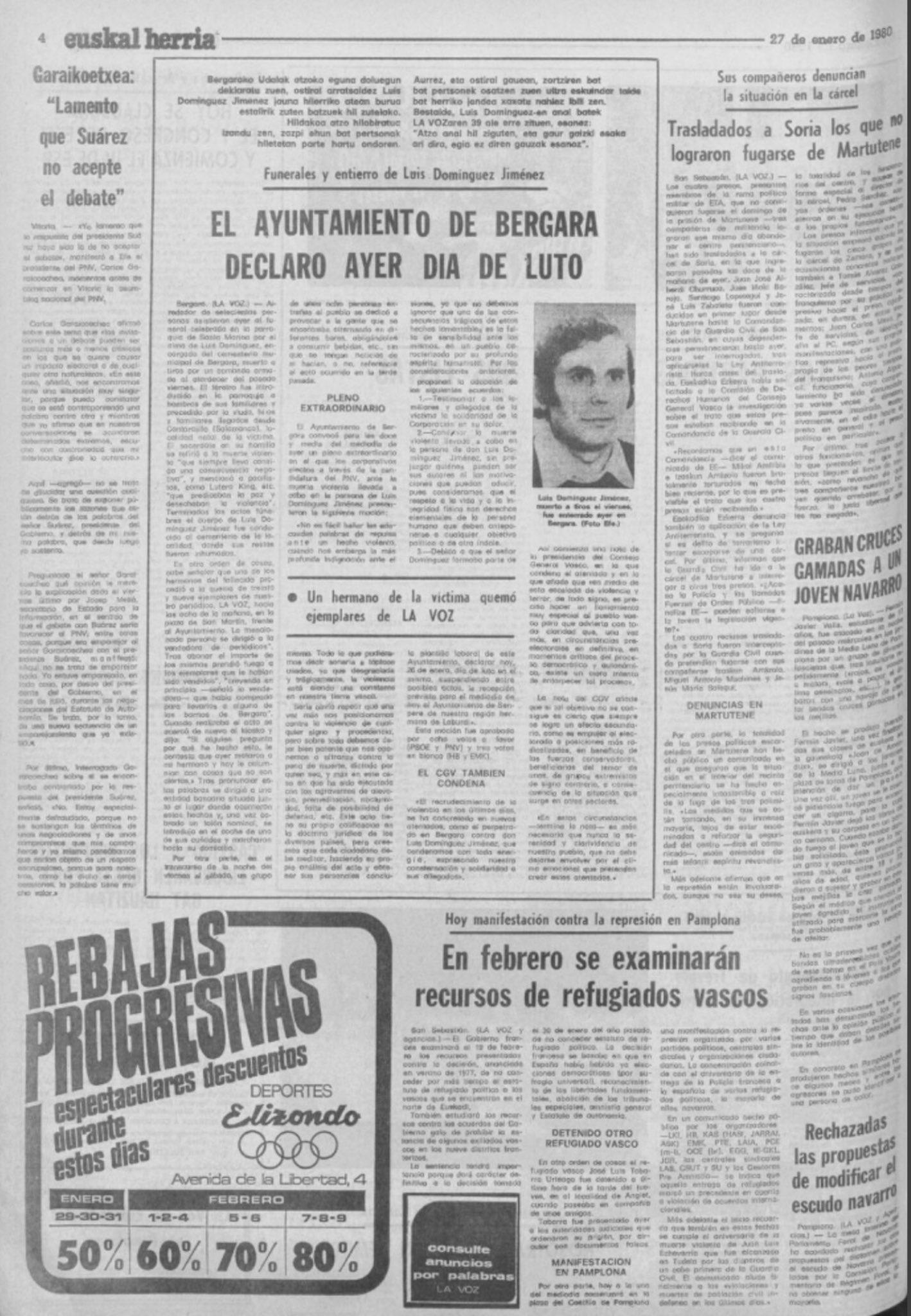 LUIS DOMÍNGUEZ JIMÉNEZ asesinado el 25 enero de 1980 en Vergara.