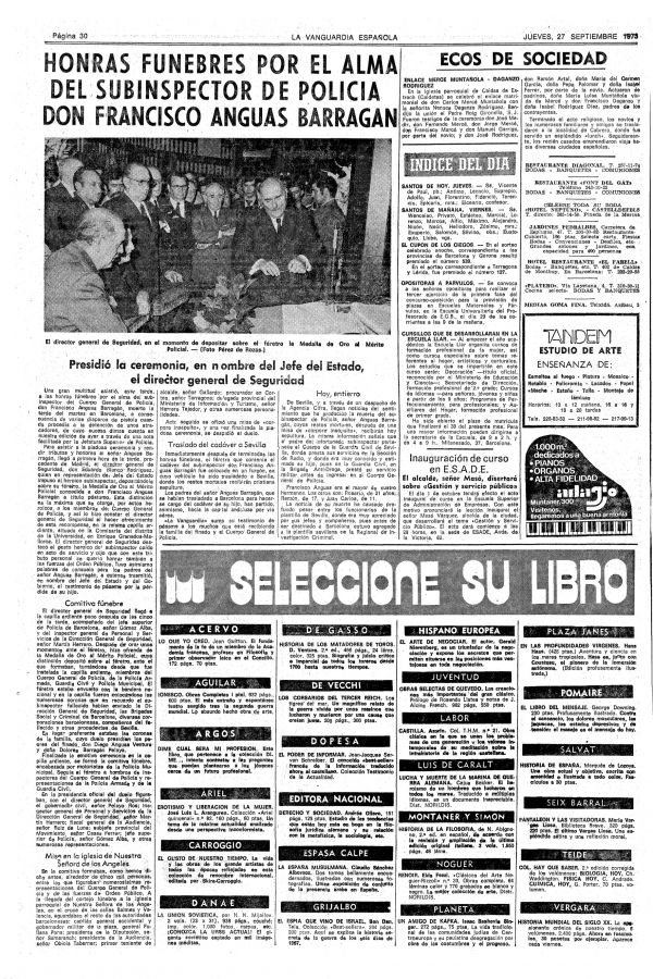 FRANCISCO JESUS ANGUAS BARRAGÁN, asesinado en Barcelona por el Movimiento Ibérico de Liberación el 25 de Septiembre de 1.973