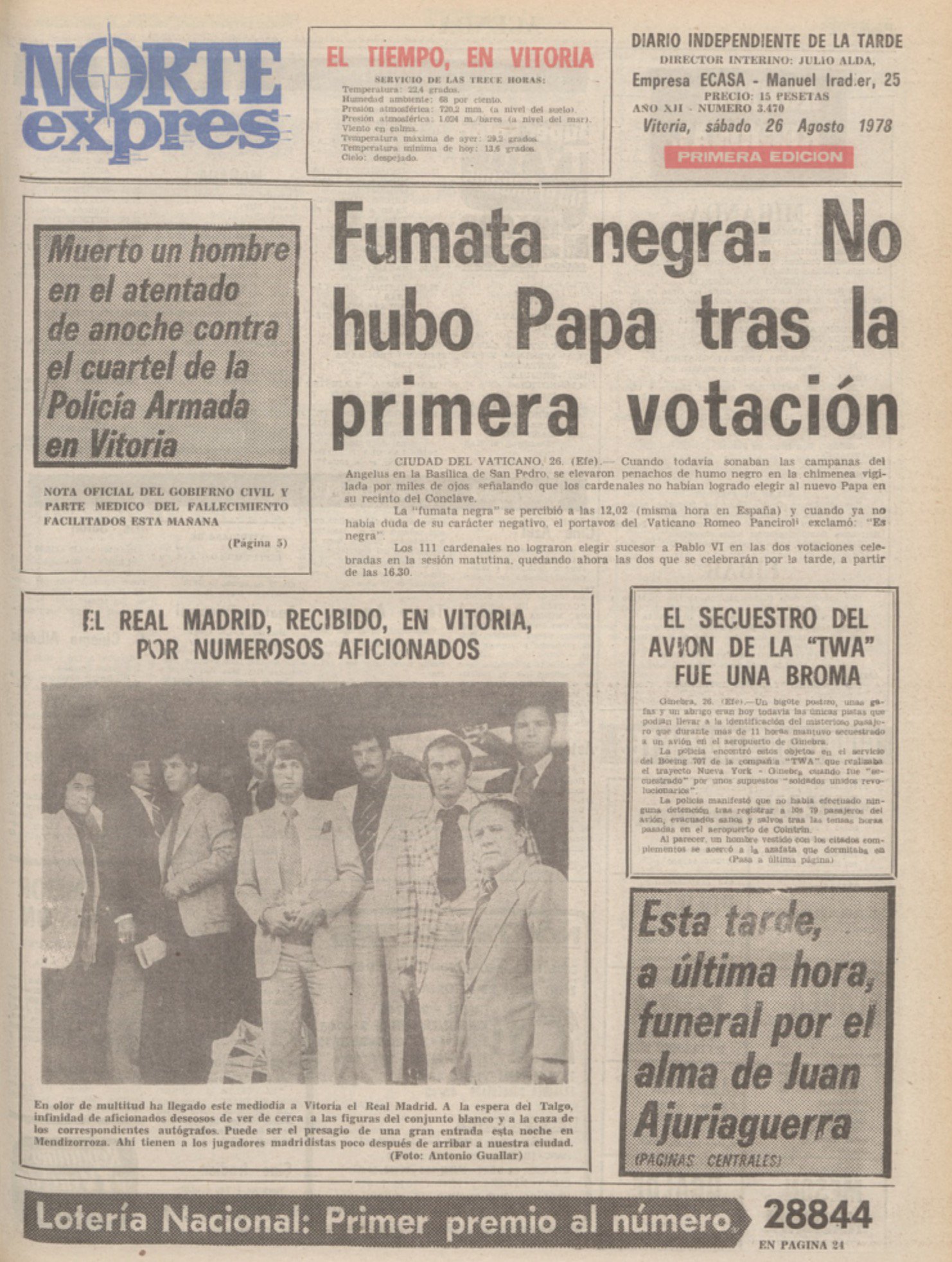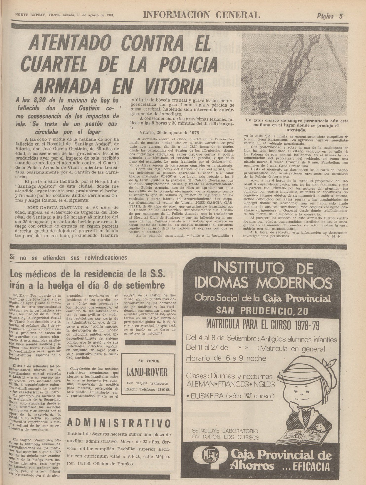 El 26 de agosto de 1978 fallecía en Vitoria el comerciante jubilado JOSÉ GARCÍA GASTIAIN, que no pudo superar las graves heridas sufridas la noche anterior.