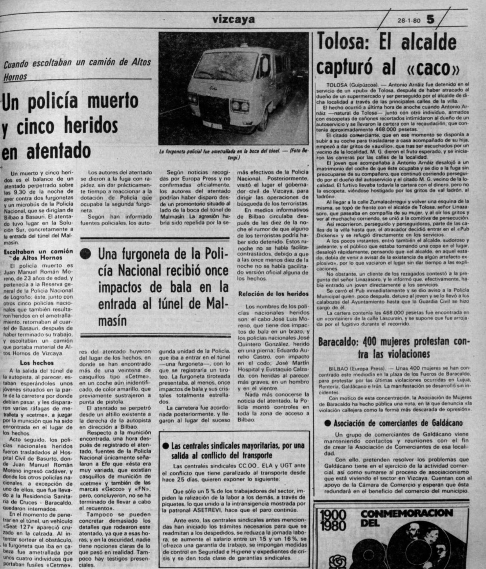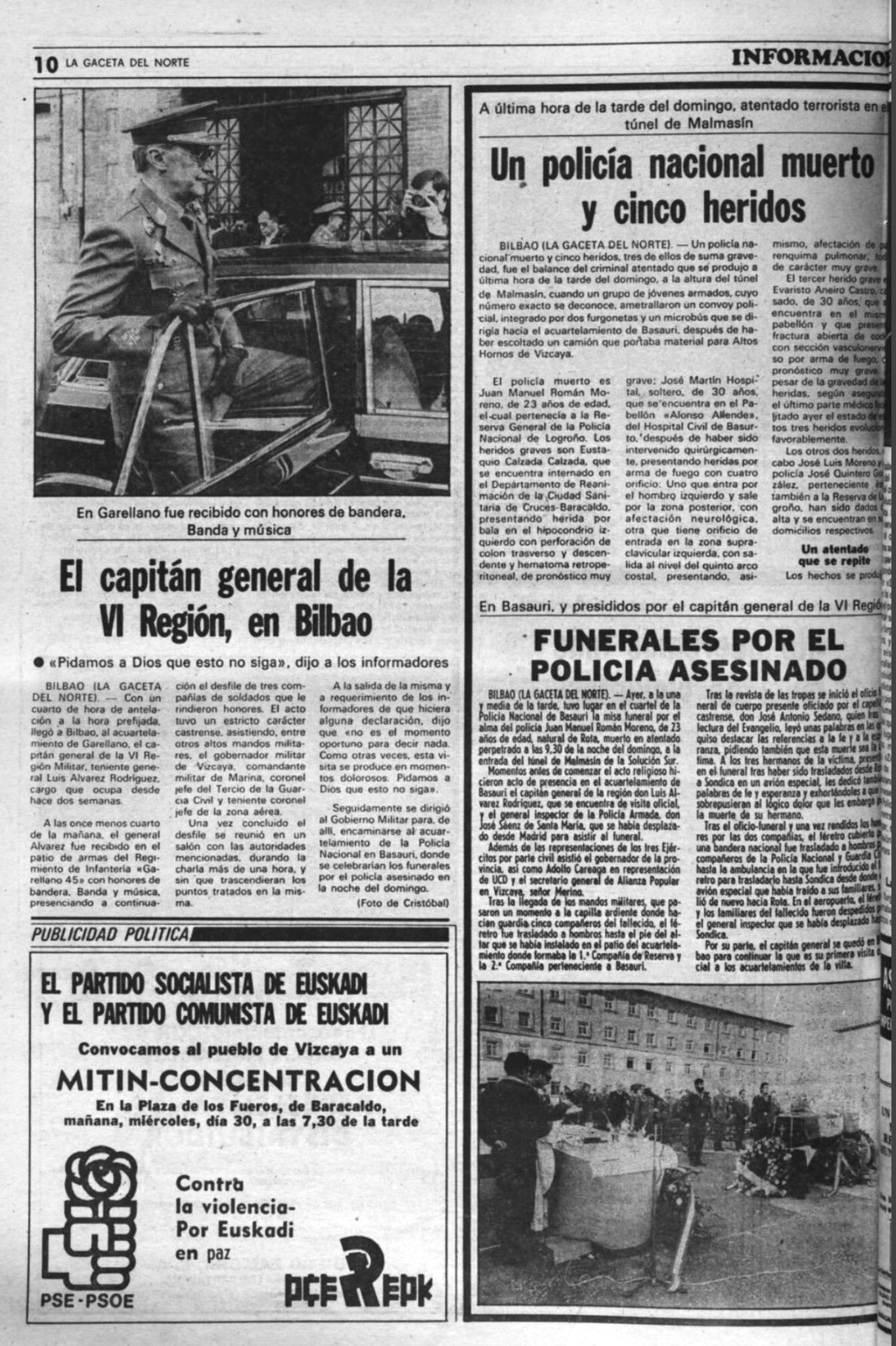 Un año después, el 27 de enero de 1980, la banda terrorista ETA asesinaba en Basauri (Vizcaya) al policía nacional JUAN MANUEL ROMÁN MORENO.
