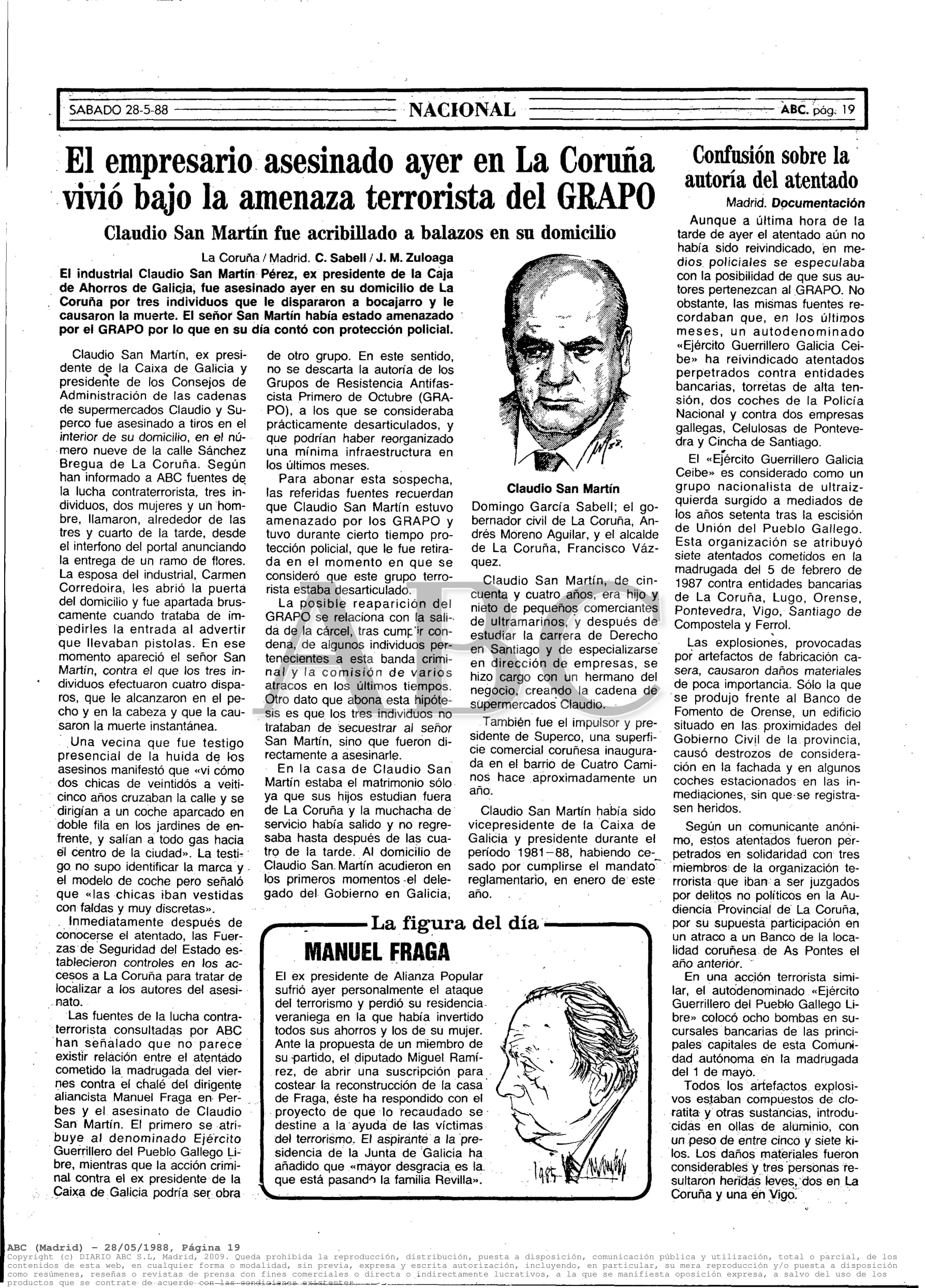 CLAUDIO SAN MARTIN PEREZ asesinado por los GRAPO el 27 de mayo de 1988 en La Coruña
