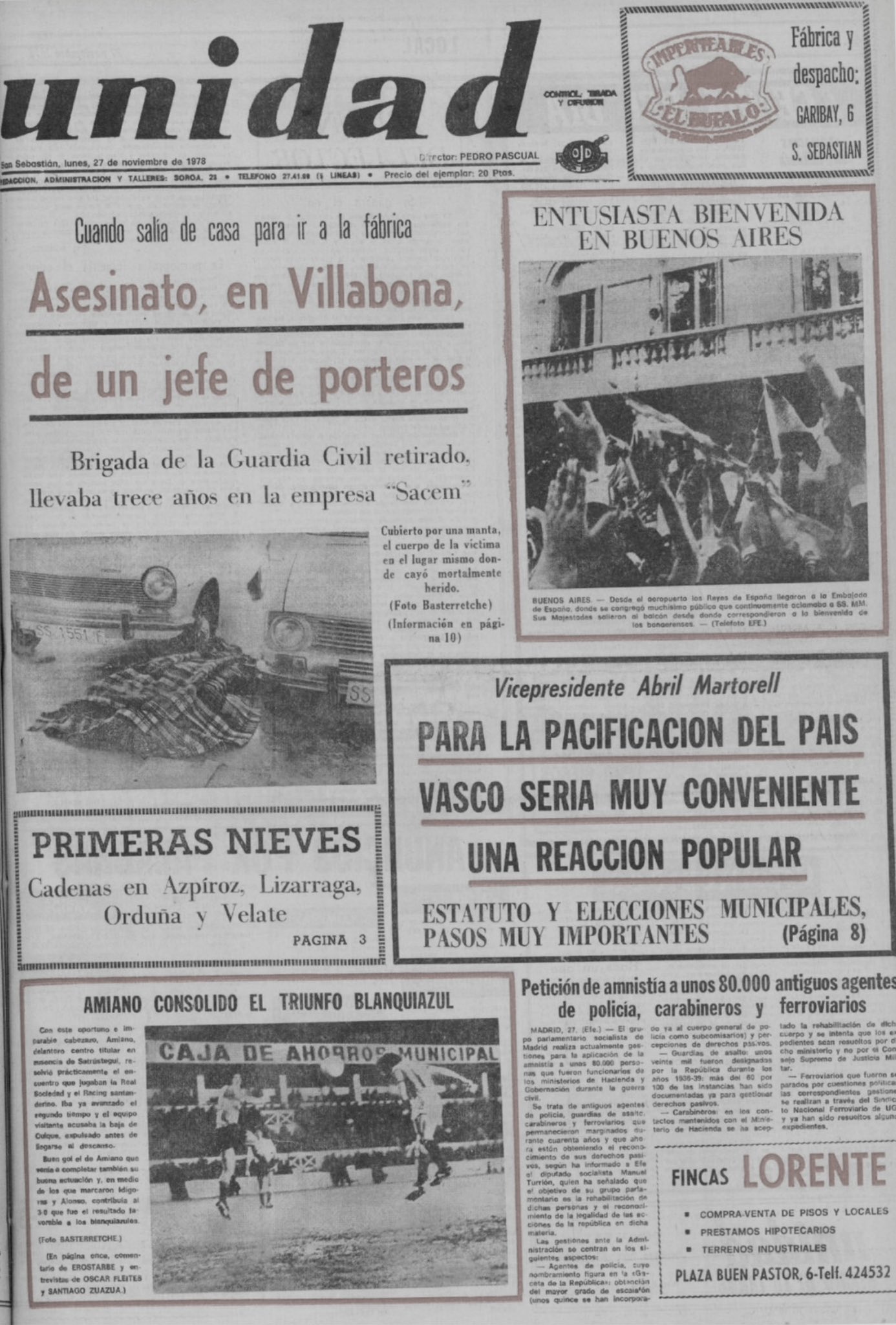 HELIODORO ARRIAGA CIAURRIZ ASLA asesinado el 27 de noviembre de 1978 en Villabona.