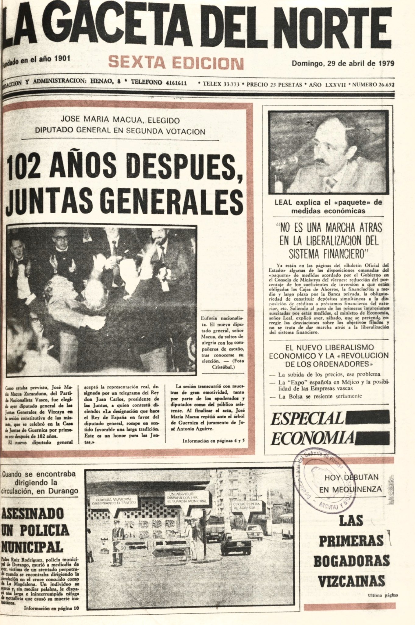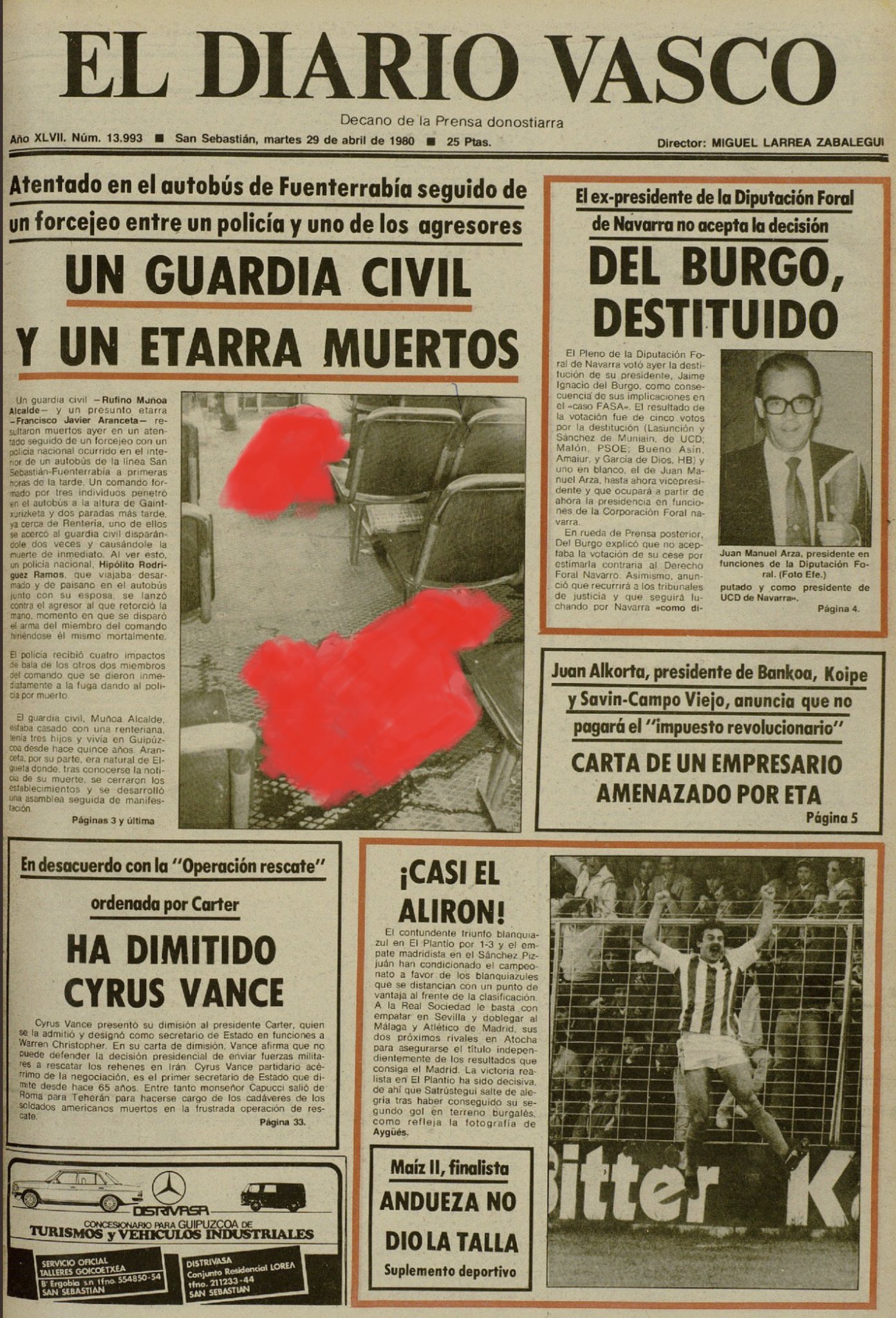 RUFINO MUÑOZ ALCALDE asesinado el 28 de abril de 1980 en San Sebastián.