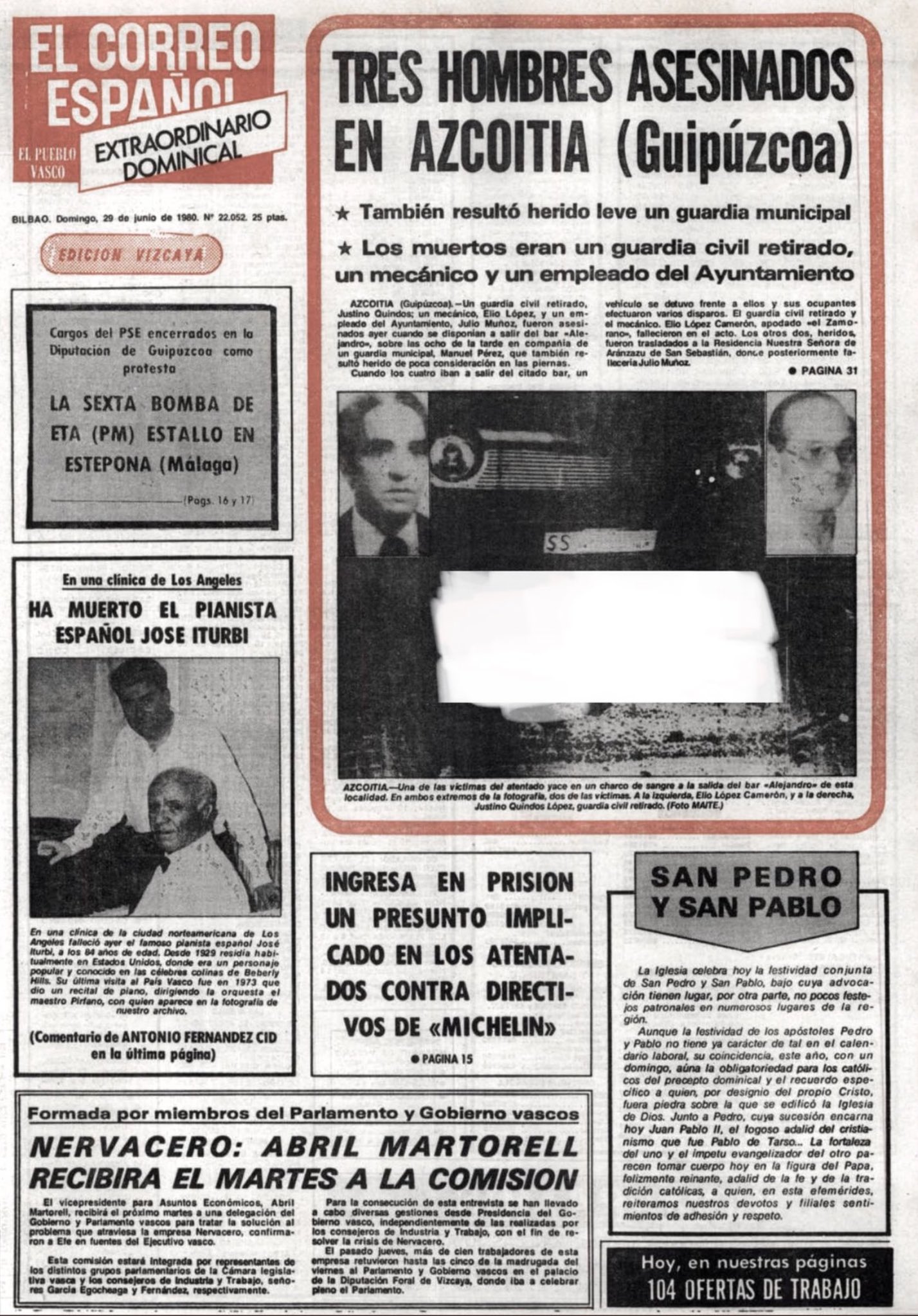 JUSTINO QUINDOS LÓPEZ asesinado el 28 de junio de 1980 en Azcoitia