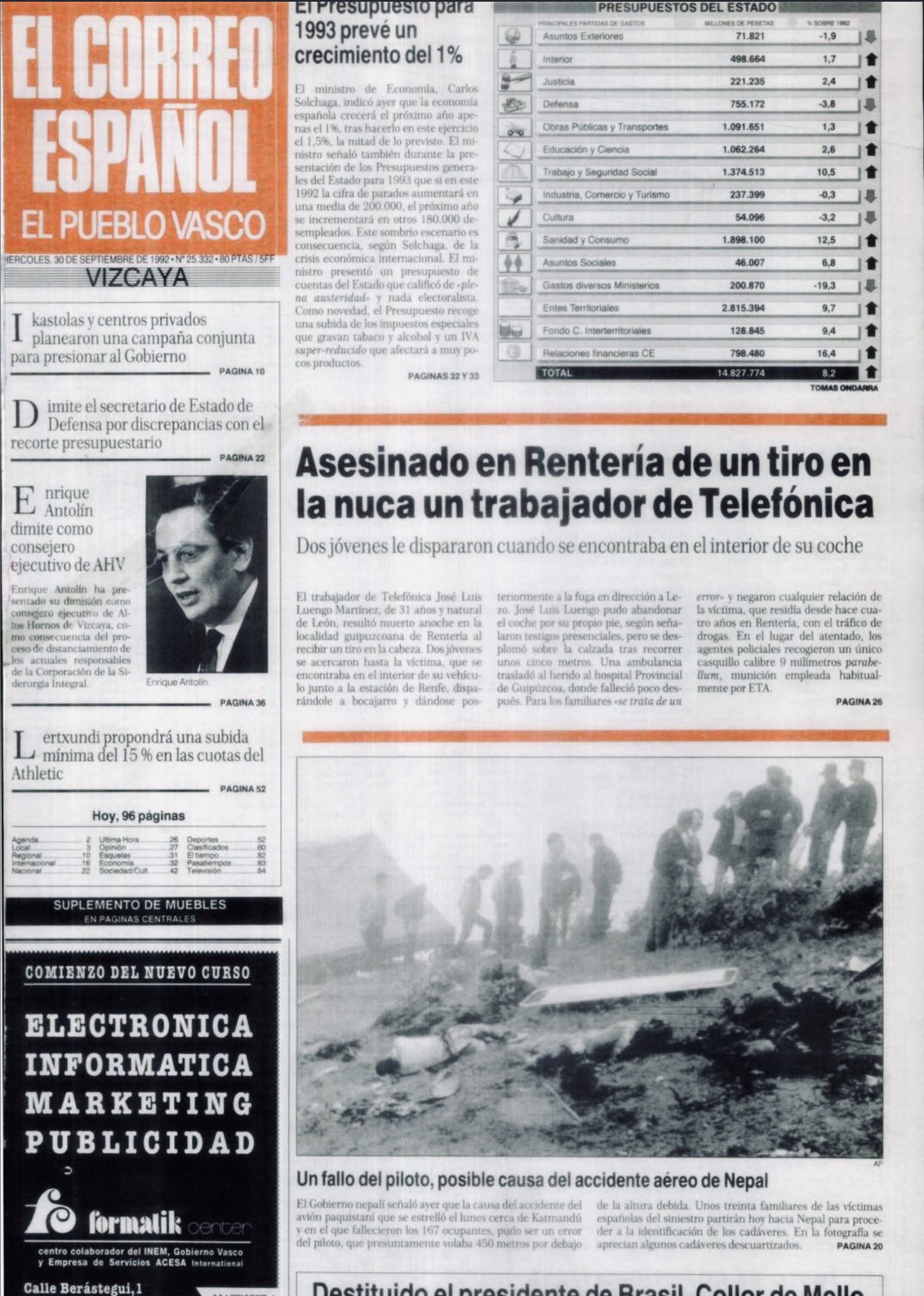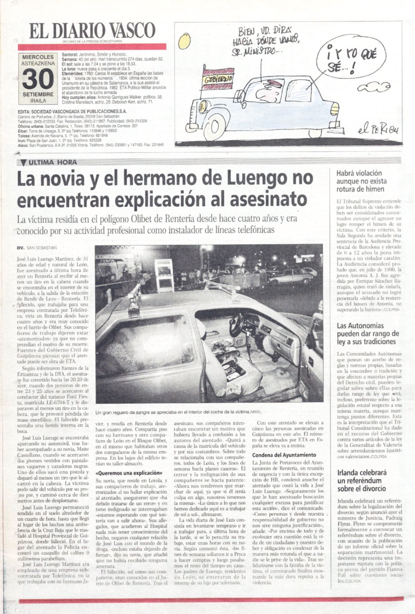JOSÉ LUIS LUENGOS MARTÍNEZ asesinado el 29 de septiembre de 1992 en Rentería.
