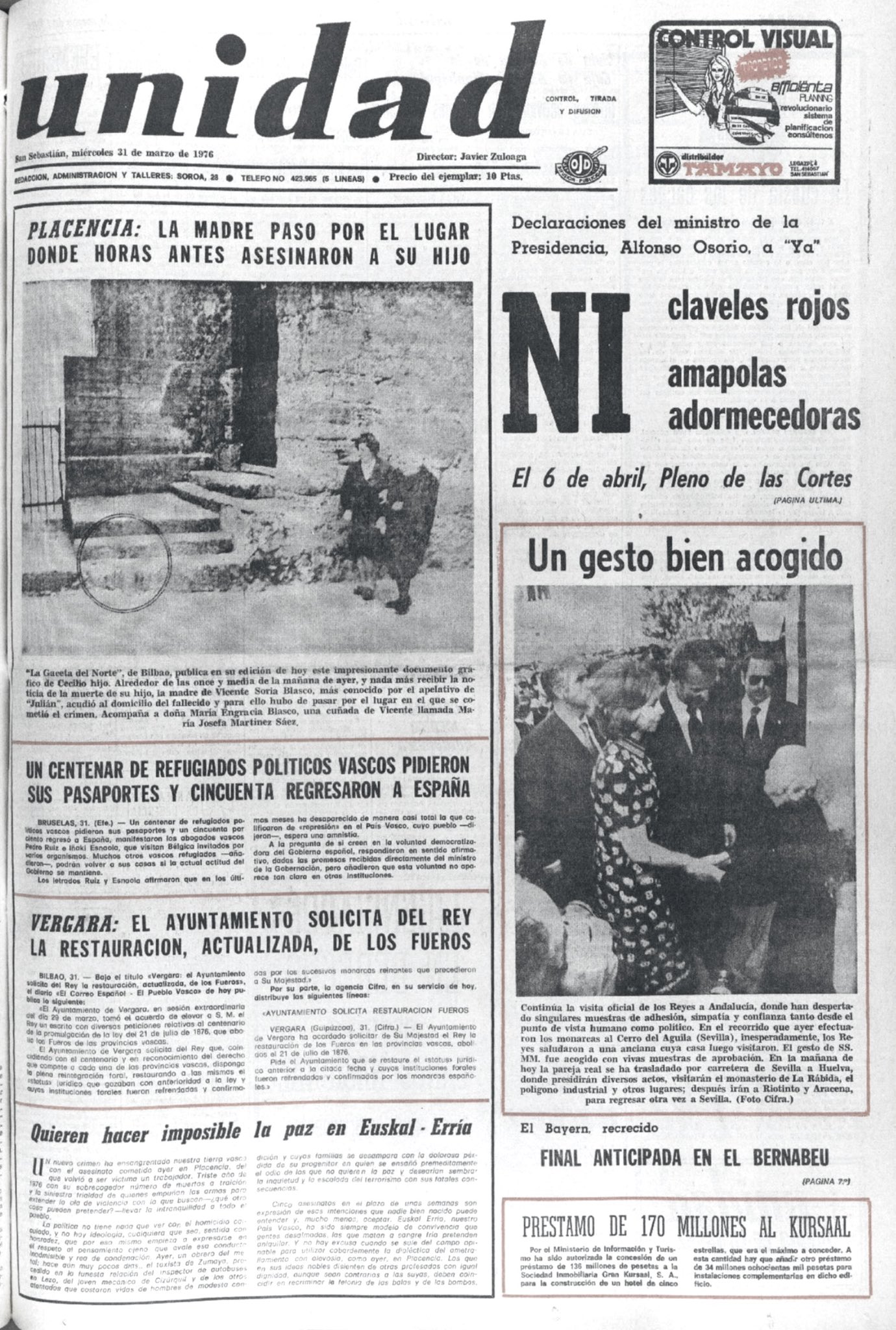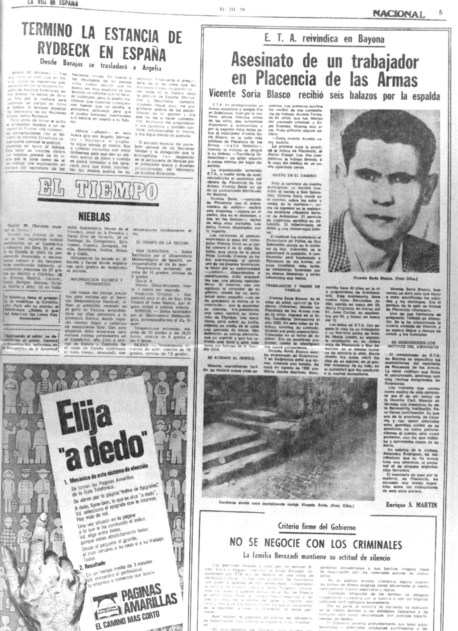 VICENTE SORIA BLASCO Asesinado el 30 de Marzo de 1976 en Placencia de las Armas (Guipúzcoa)